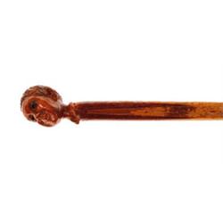 CARVED WOODEN FOLK ART FIGURAL CANE WITH HEAD OF YOUNG BLACK MAN. This late 19th or early 20th Century cane has very nicely detailed features. SIZE: Approx. 38" long. CONDITION: Most of the varnish is chipped and worn along the shaft and on the surface of the head, otherwise generally very good. A neat piece of folk art. 4-53622