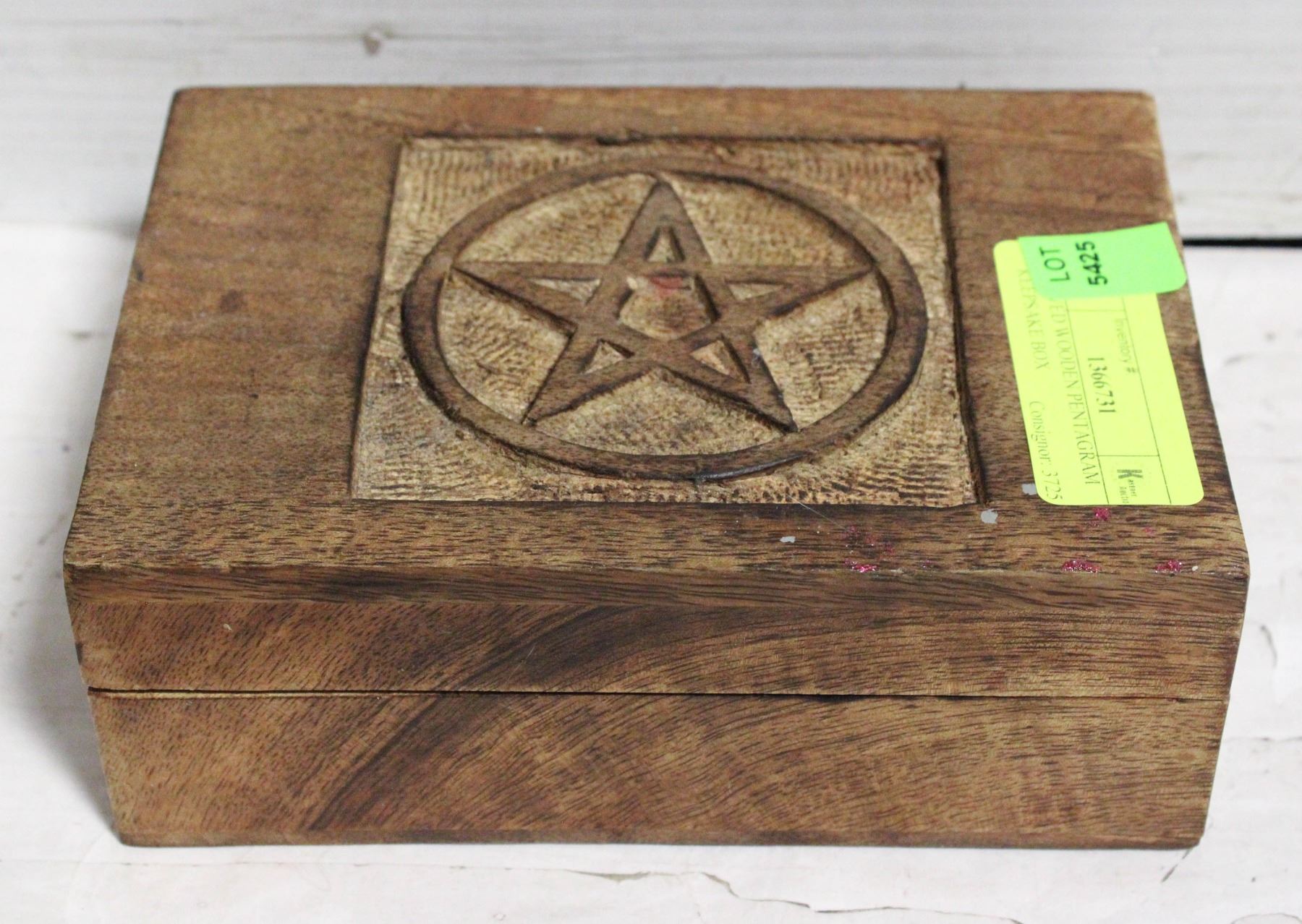 CARVED WOODEN PENTAGRAM KEEPSAKE BOX