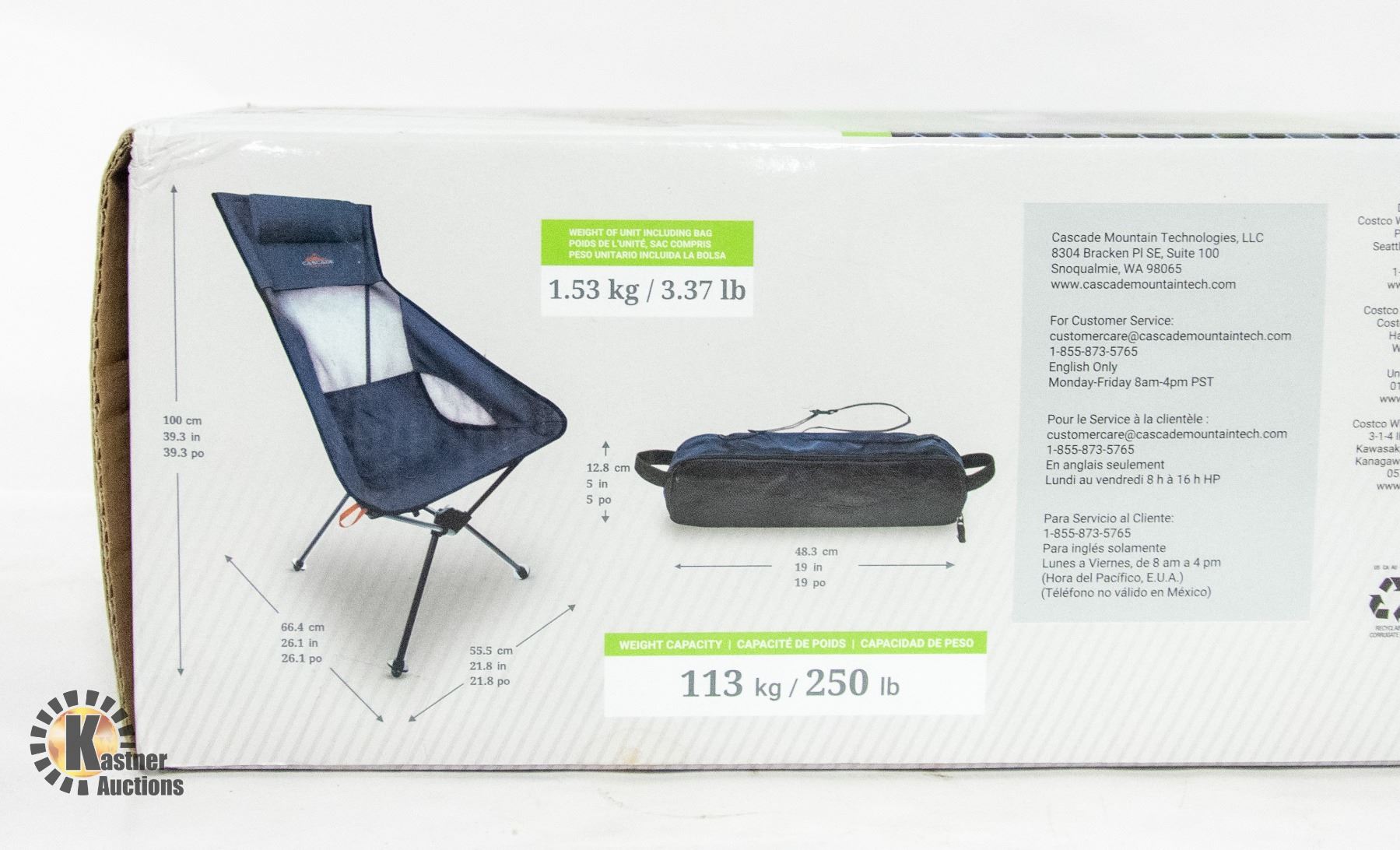 COMPACT AND LIGHTWEIGHT, PERFECT FOR CAMPING TRIPS, BEACH DAYS, SPORTING EVENTS, OUTDOOR CONCERTS, AND MORE. WEIGHING ONLY 3 LBS 4 OZ, THIS HIGH BACK CHAIR IS LIGHTWEIGHT AND EASY TO CARRY ANYWHERE AND EVERYWHERE **ALL ITEMS MUST BE REMOVED BY 5PM SATURDAY, AUGUST 19TH 2023. ALL REMAINING ITEMS WILL BE SUBJECT TO A $6.00 PER DAY STORAGE CHARGE. ANY ITEMS REMAINING AFTER MONDAY, SEPTEMBER 4TH, 2023 WILL BE CONSIDERED FORFEITED. NO REFUNDS WILL BE ISSUED FOR FORFEITED ITEMS. TO SCHEDULE A PICK UP APPOINTMENT CLICK HERE