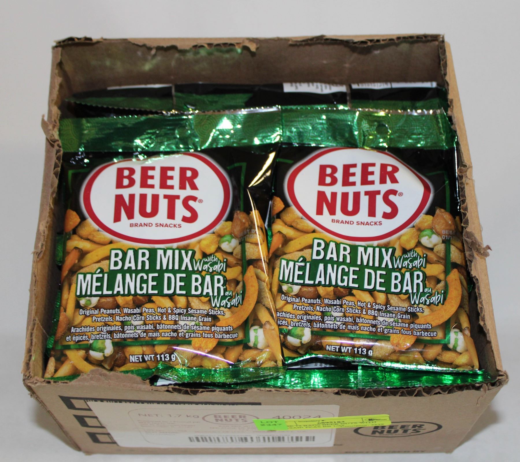CASE 12 BAGS BEER NUTS WITH WASABI PEAS BB 1/25
