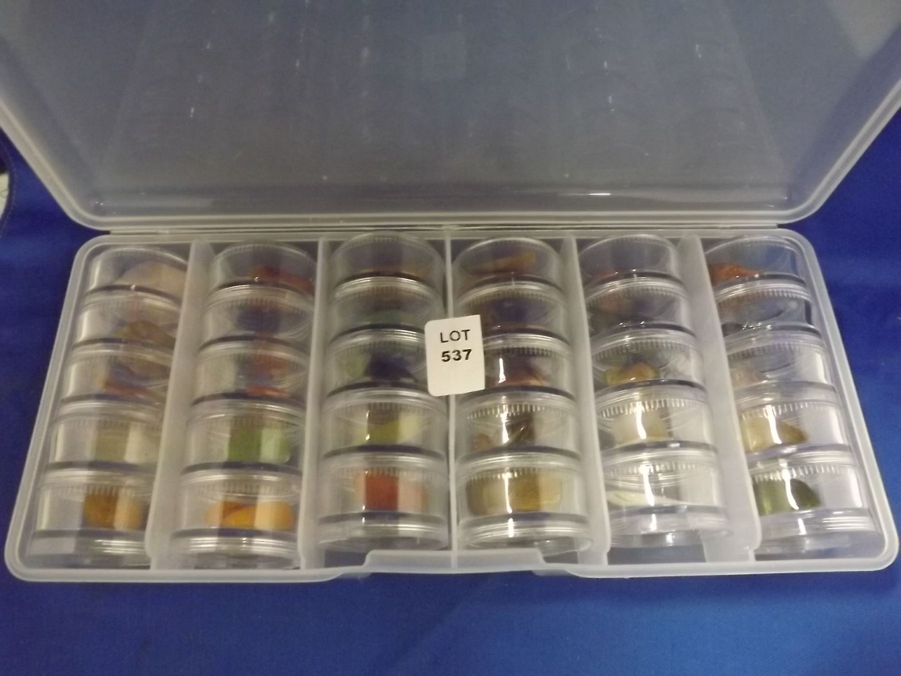 CASE FULL OF POLISHED ROCKS IN DISPLAY CASES