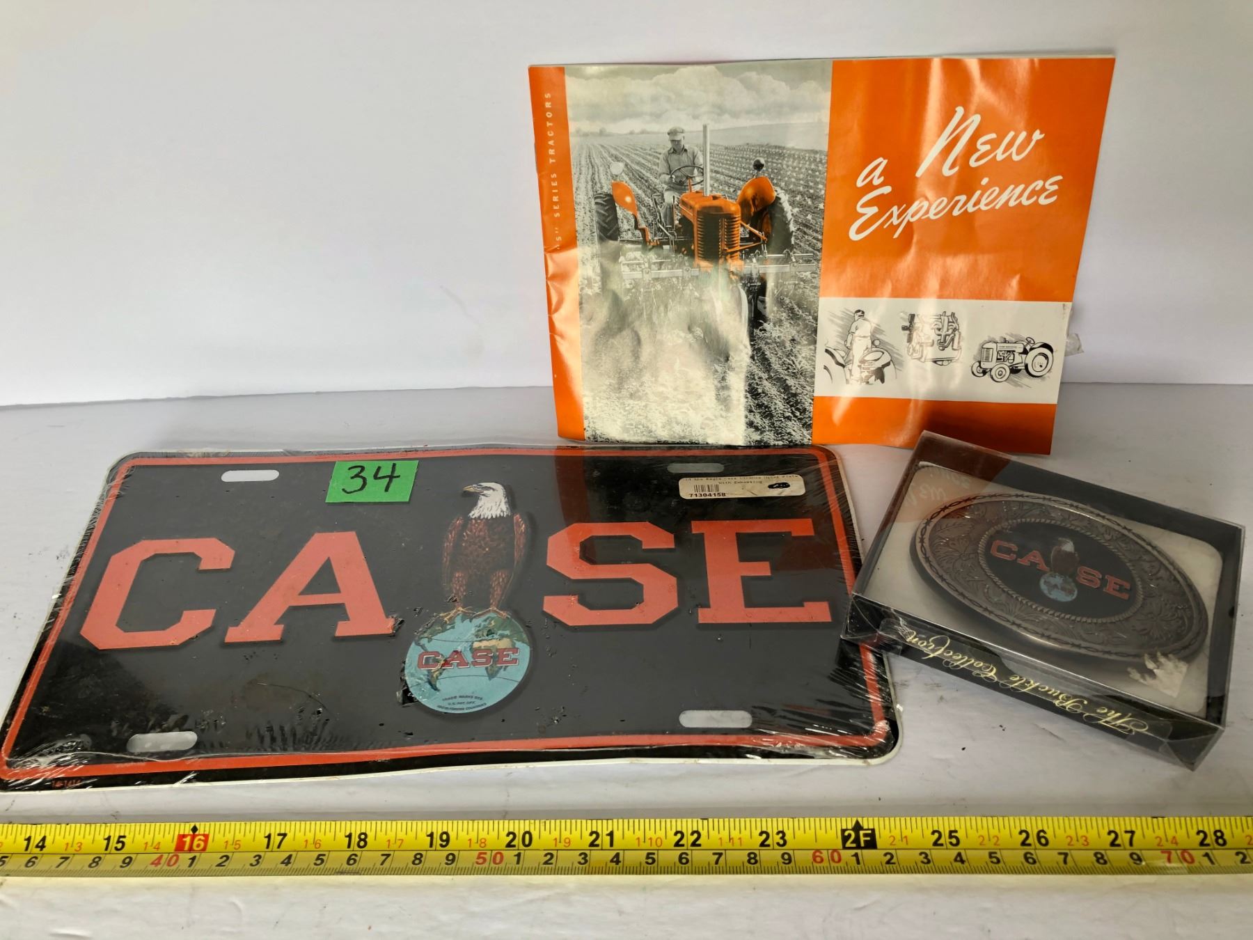 LICENSE PLATE, BELT BUCKLE & S SERIES BROCHURE.