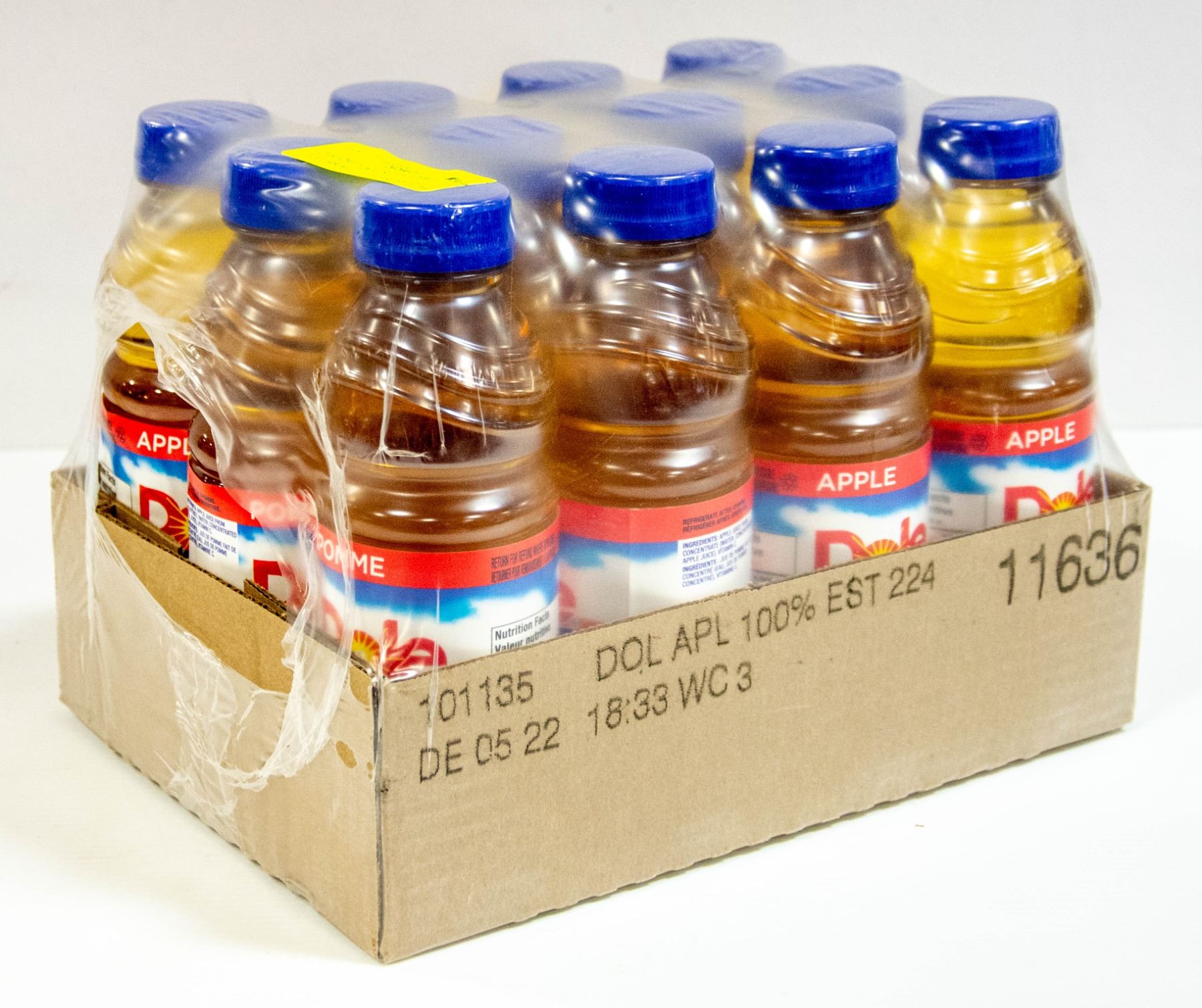 CASE OF 12 DOLES 100% APPLE JUICE,450ML