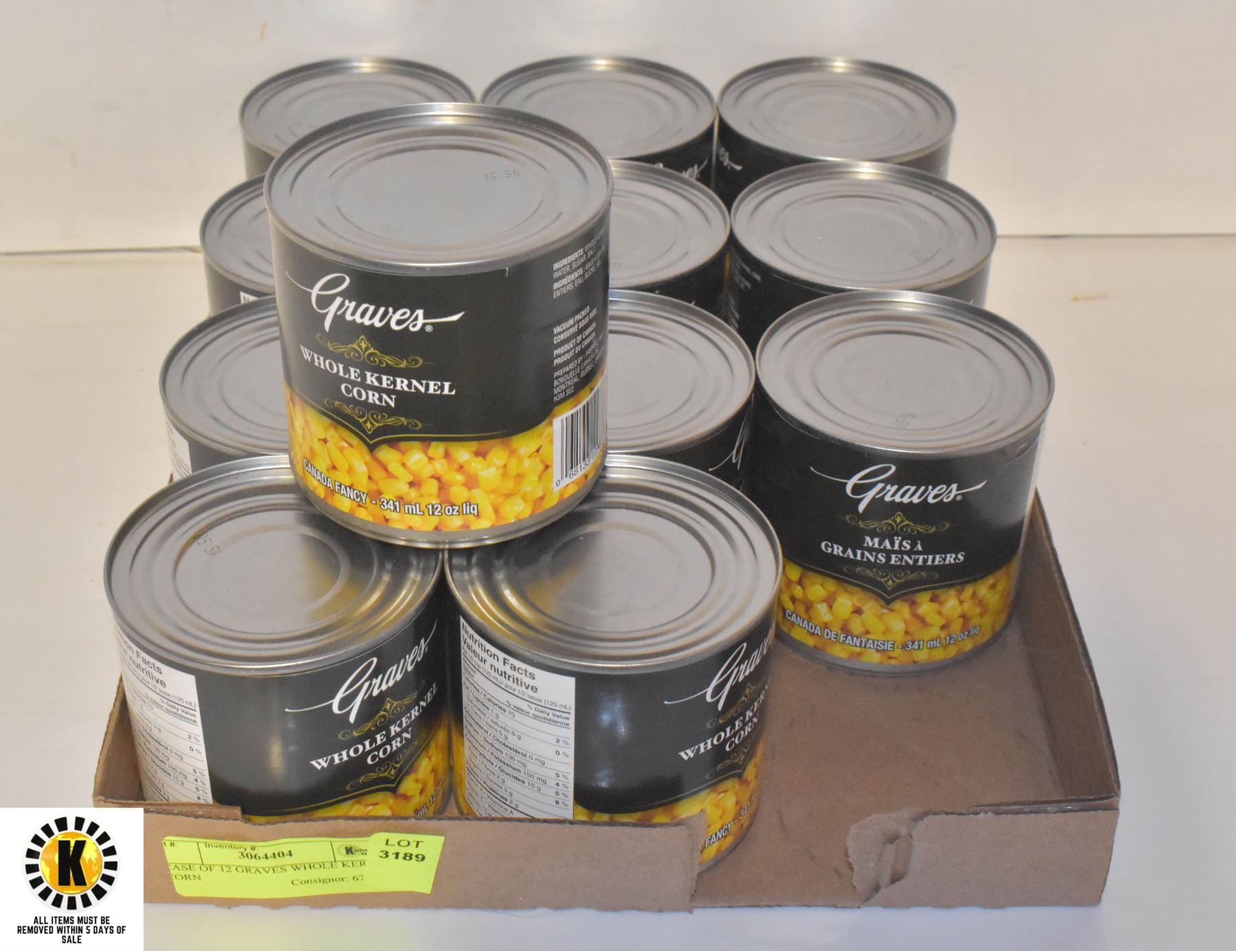 CASE OF 12 GRAVES WHOLE KERNEL CORN