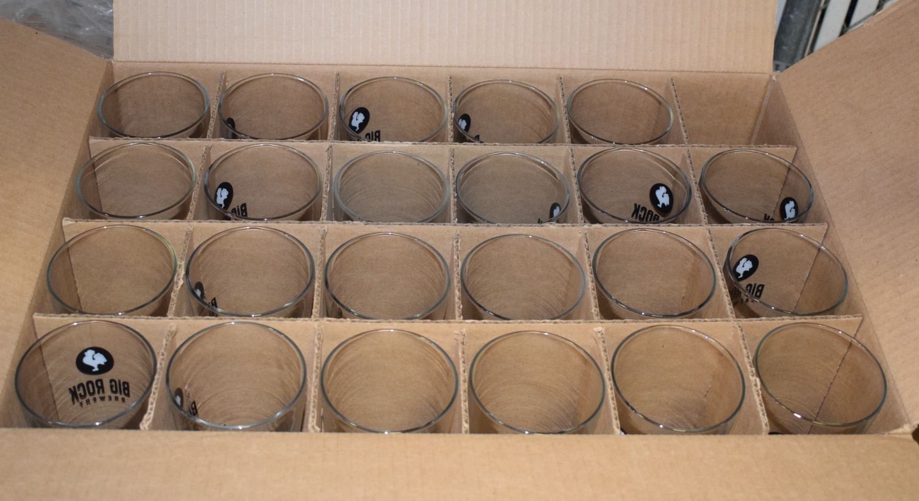 CASE OF 24 NEW 20 BIG ROCK BEER GLASSES.