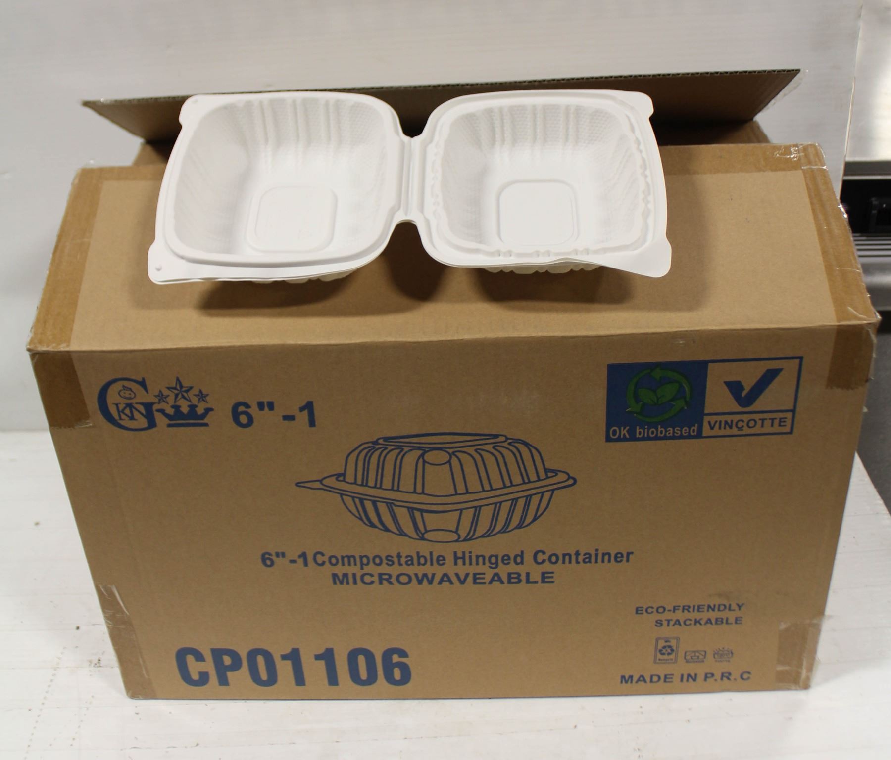 CASE OF 250 COMPOSTABLE 6"-1 MICROWAVEABLE HINGED