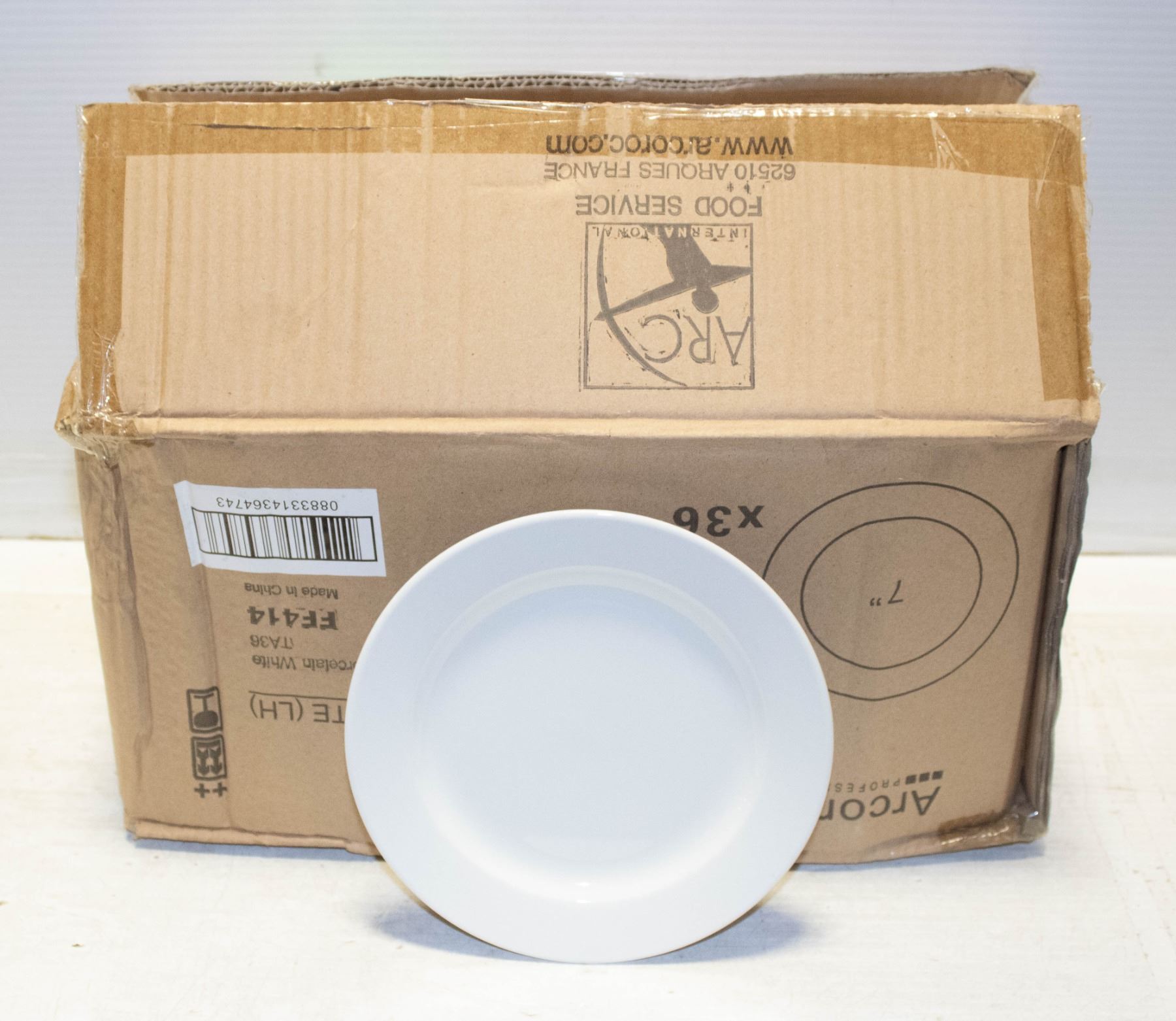 CASE OF 36 7" BRIGHT WHITE ARCOROC PLATES