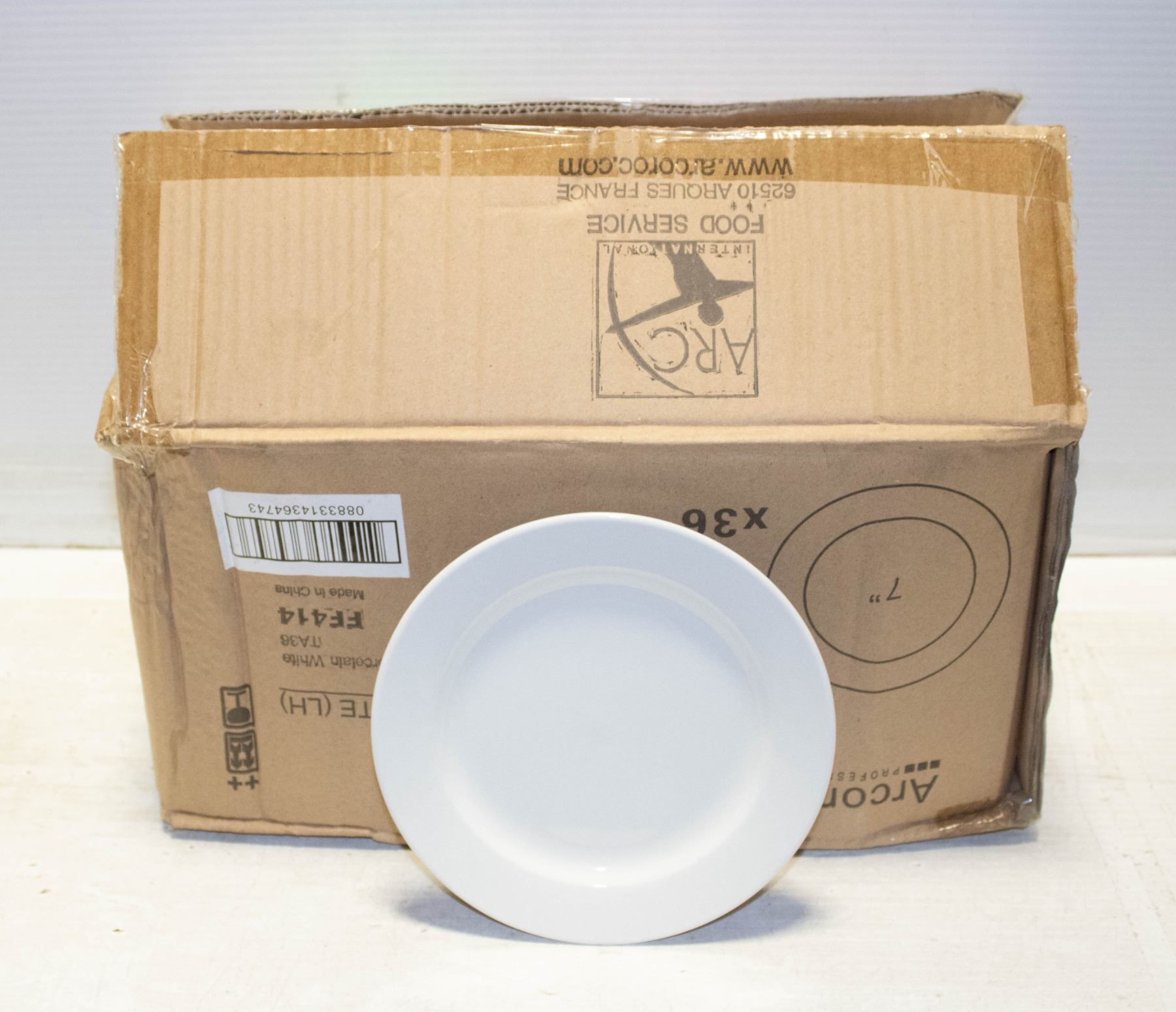CASE OF 36 7" BRIGHT WHITE ARCOROC PLATES