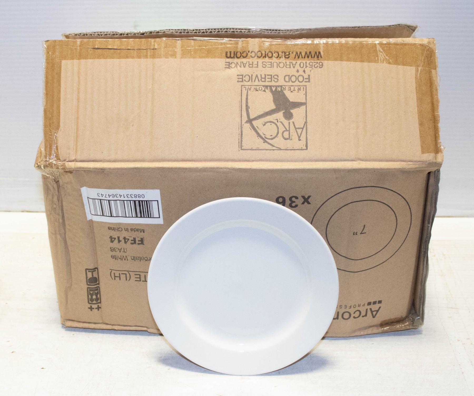 CASE OF 36 7" BRIGHT WHITE ARCOROC PLATES
