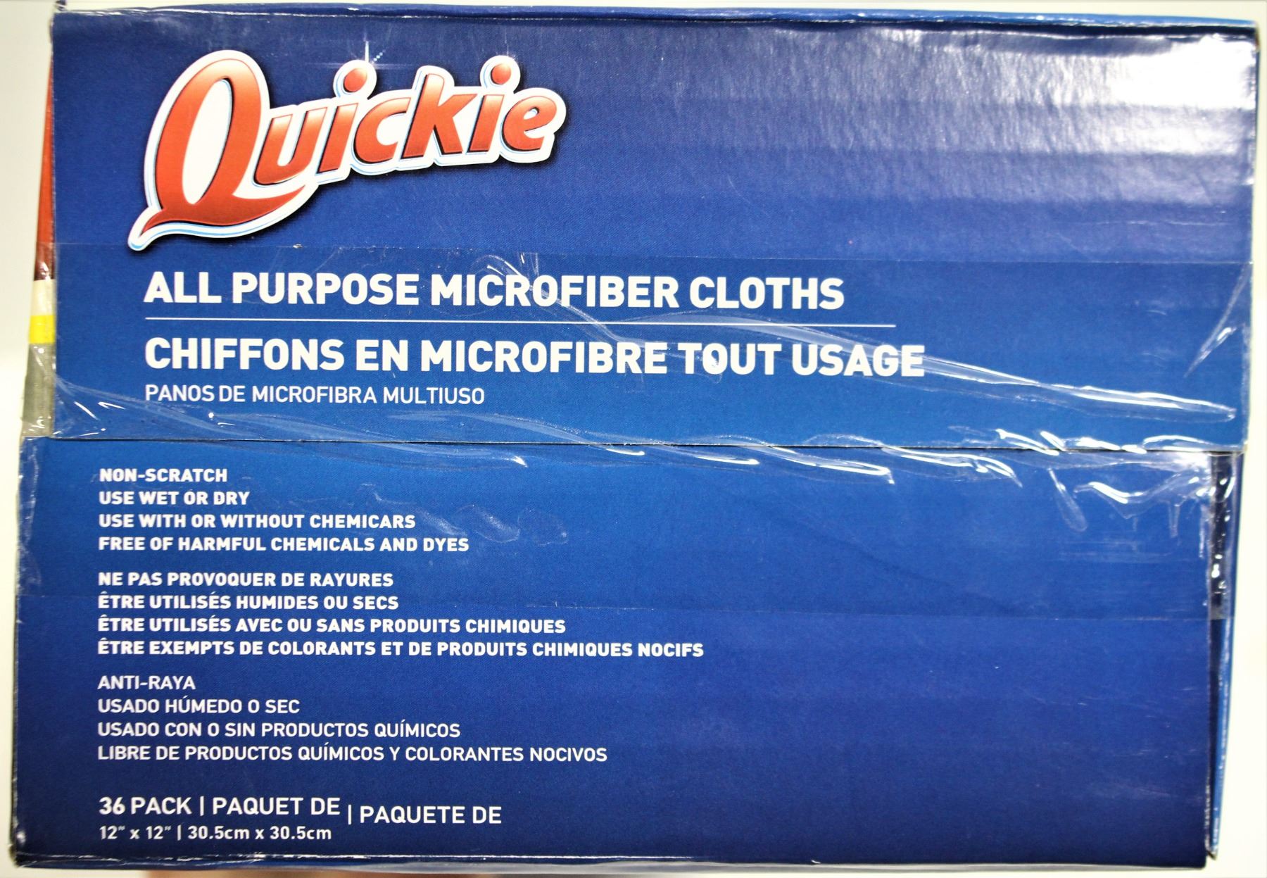 QUICKIE 36 PACK ALL PURPOSE MICROFIBER CLEANING CLOTH BY RUBBERMAID. GREAT FOR WET & DRY USE. NON SCRATCHING.