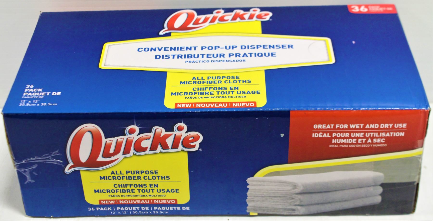 QUICKIE 36 PACK ALL PURPOSE MICROFIBER CLEANING CLOTH BY RUBBERMAID. GREAT FOR WET & DRY USE. NON SCRATCHING.