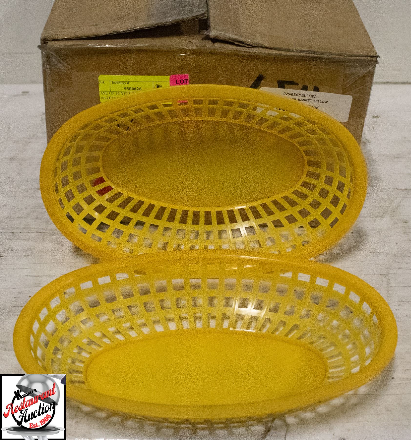 CASE OF 36 YELLOW PLASTIC OVAL BASKETS