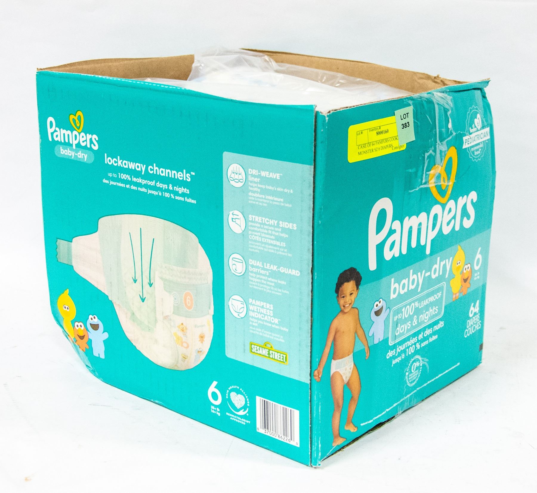 CASE OF 64 PAMPERS COOKIE MONSTER SZ 6 DIAPERS