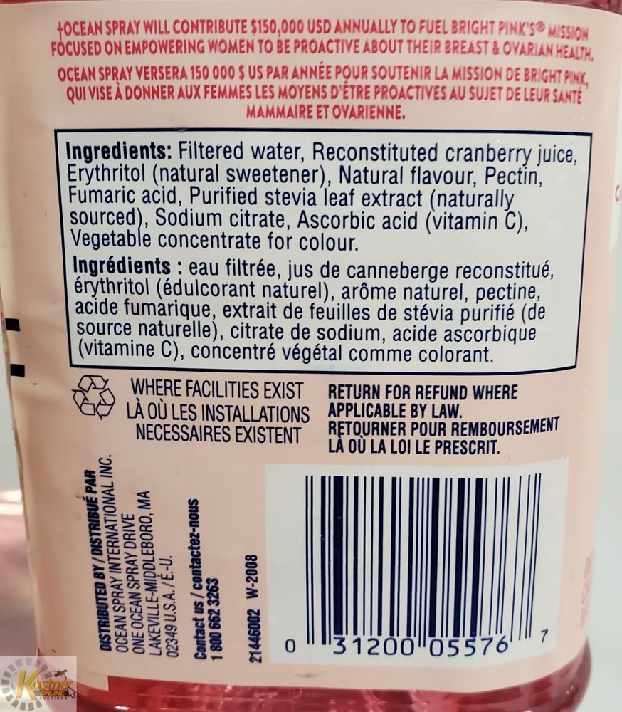 CASE OF 8 OCEANSPRAY PINK DIET CRANBERRY 1.89L