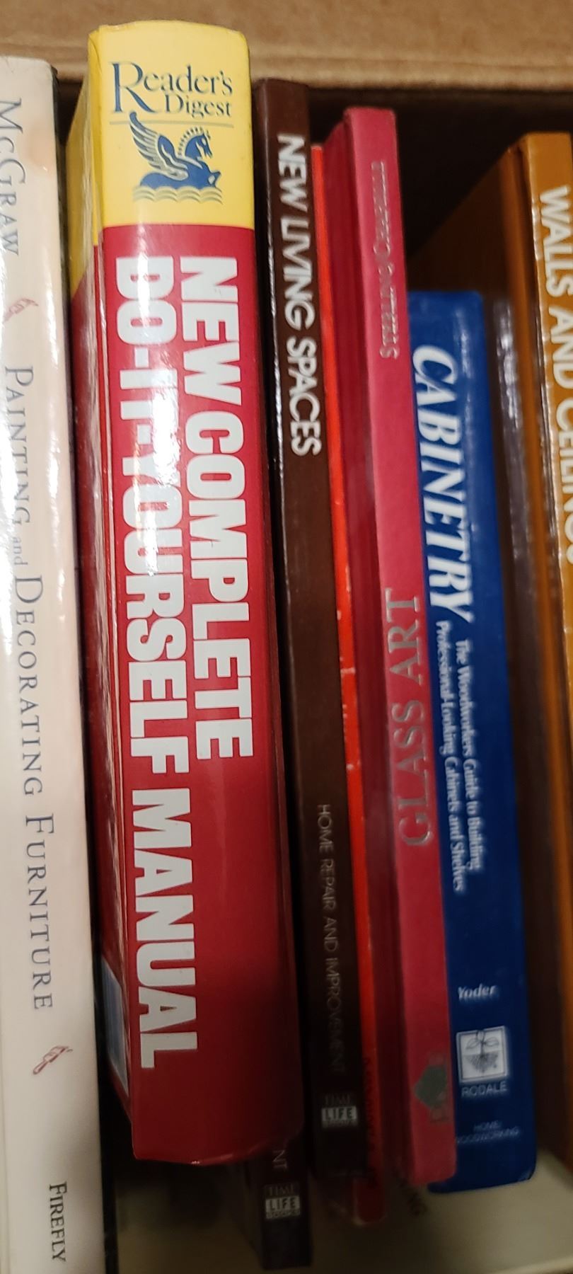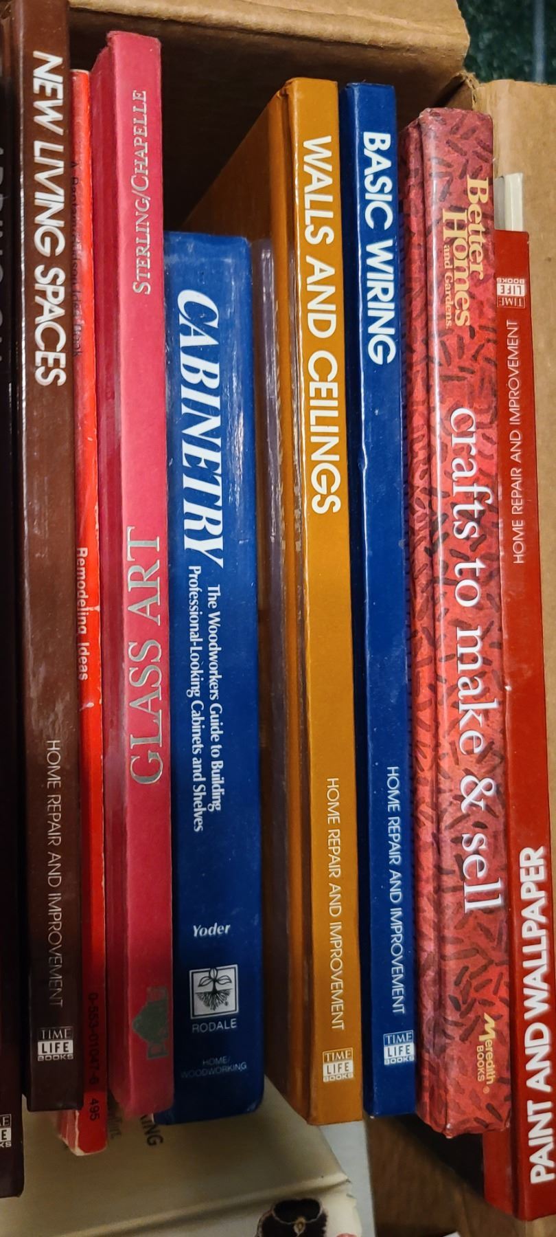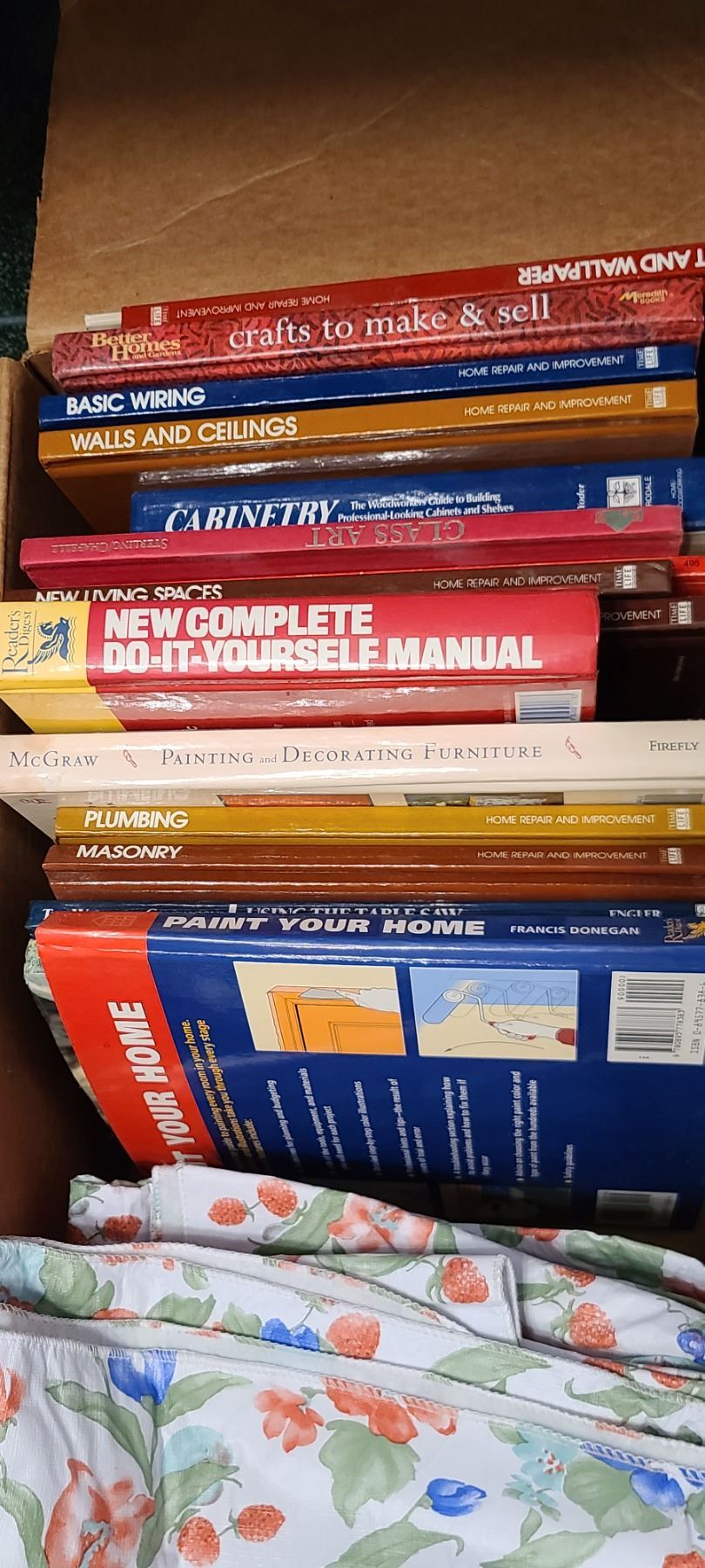 CASE OF BOOKS 'DO-IT-YOURSELF", CRAFTS, CABINETRY + PICNIC STUFF