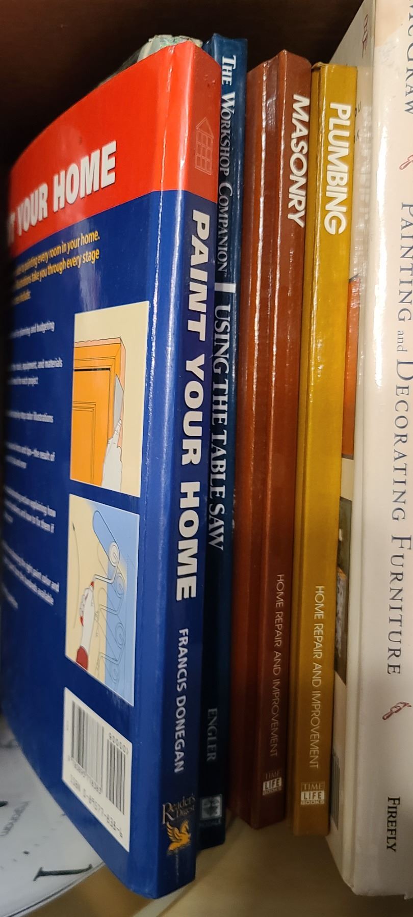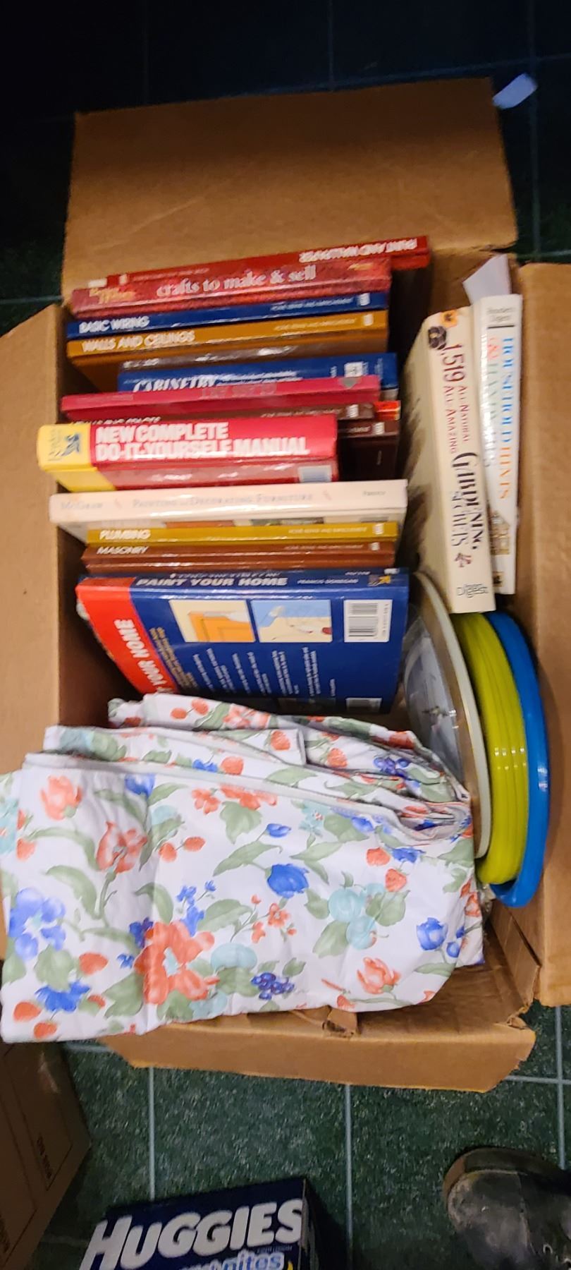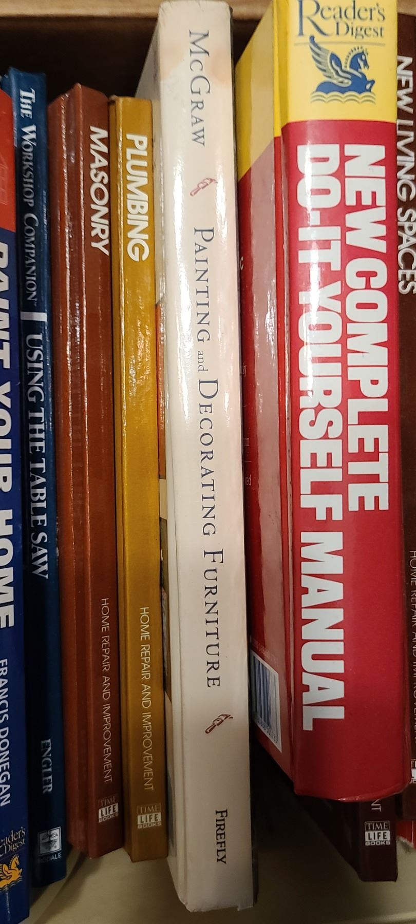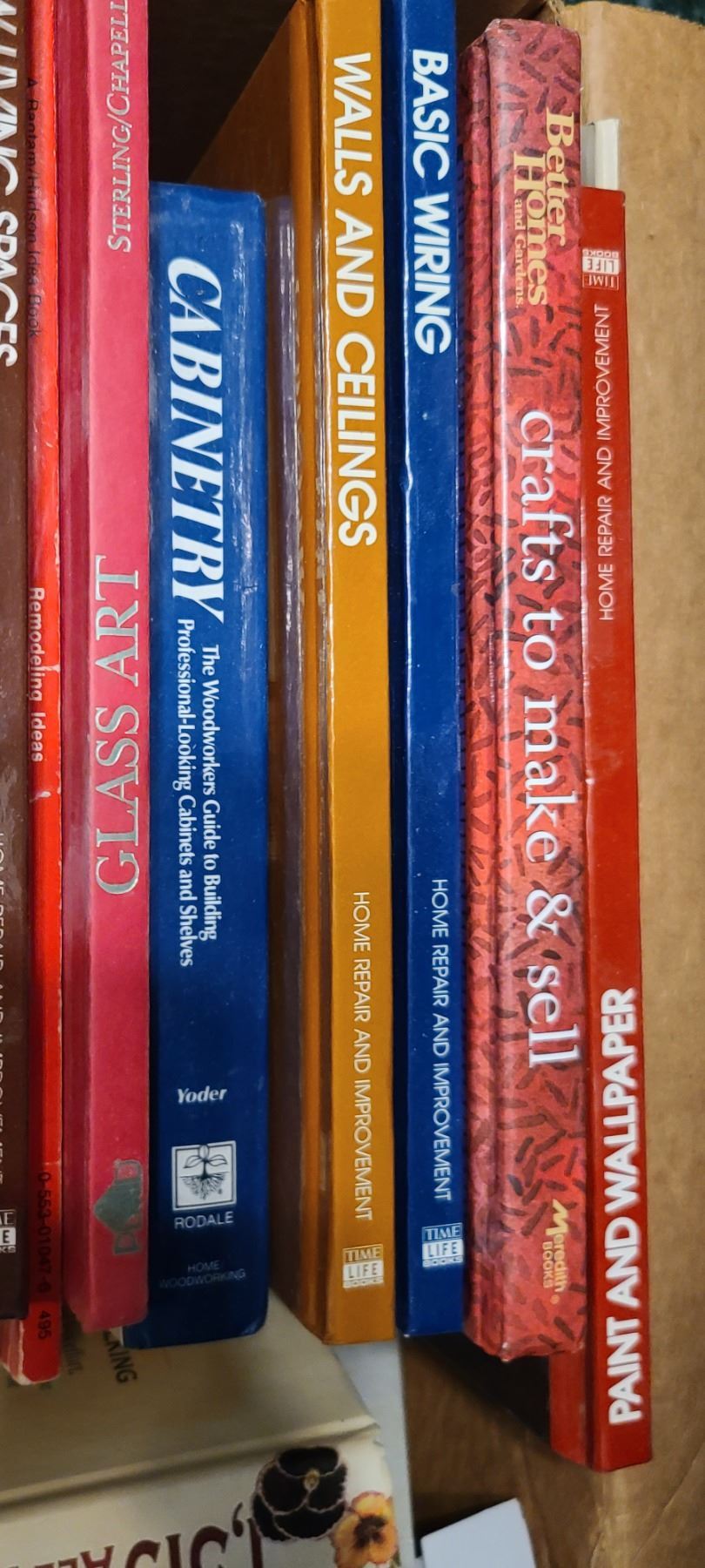 CASE OF BOOKS 'DO-IT-YOURSELF", CRAFTS, CABINETRY + PICNIC STUFF