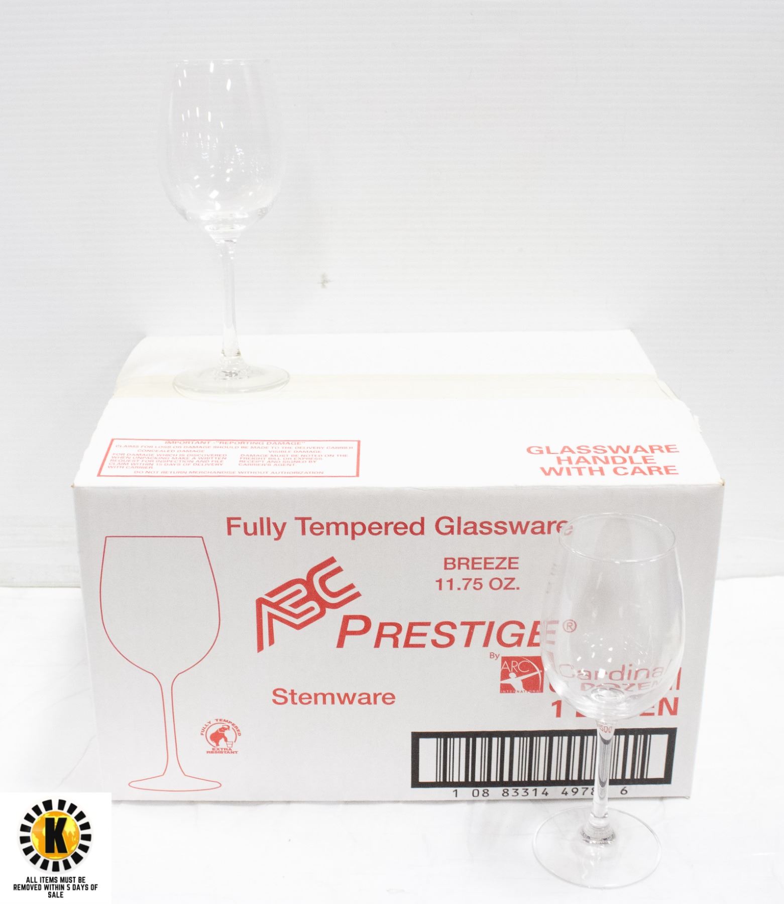 CASE OF CARDINAL 11.75 OZ WINE GLASSES - 12 TOTAL