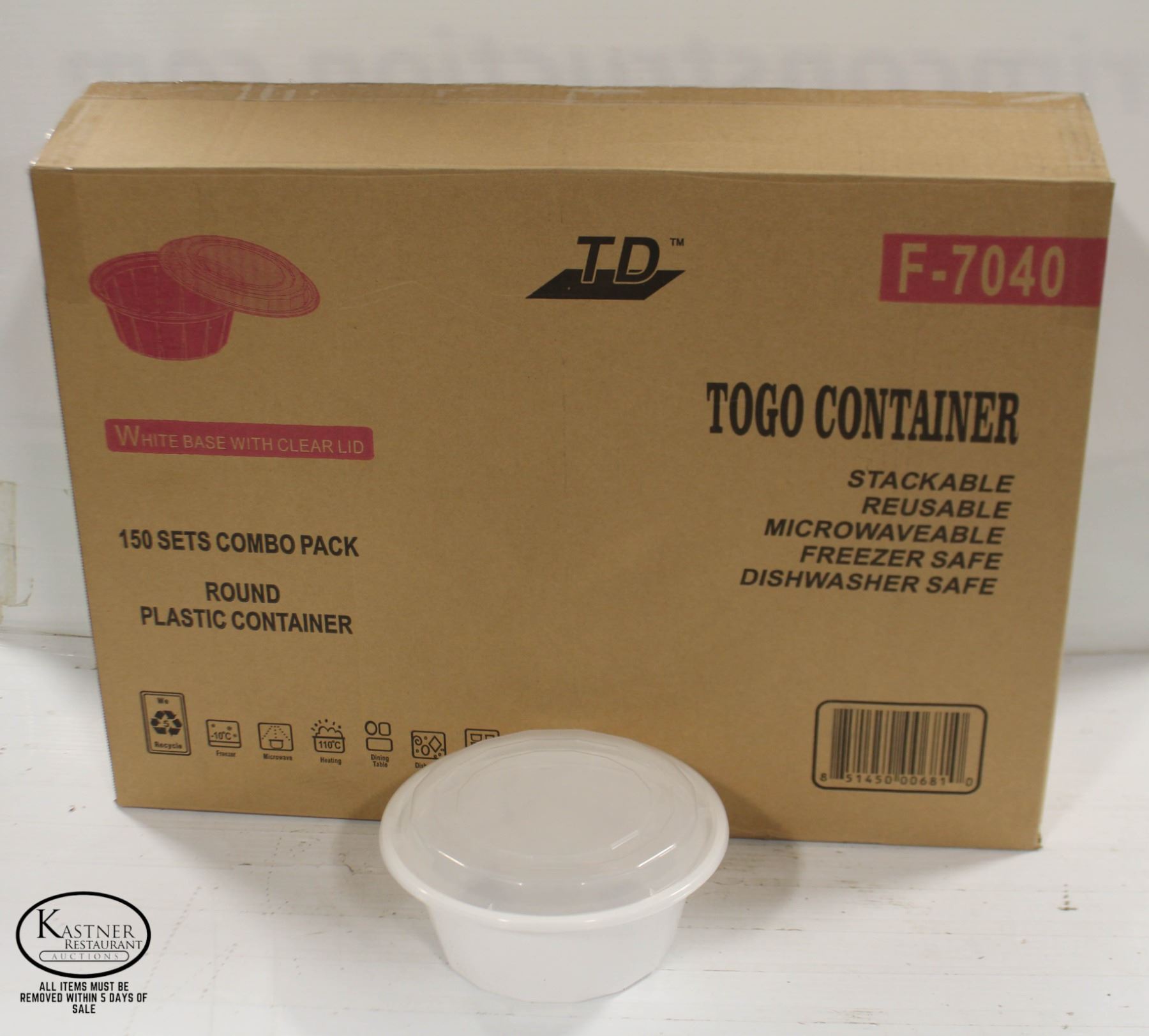 150 COMBO SETS OF MICROWAVEABLE, STACKABLE, REUSABLE, FREEZER SAFE, DISHWASHER SAFE, DISPOSABLE TO GO FOOD CONTAINERS **ALL ITEMS MUST BE REMOVED BY 5PM MONDAY, AUGUST 28TH, 2023. ALL REMAINING ITEMS WILL BE SUBJECT TO A $6.00 PER DAY STORAGE CHARGE. ANY ITEMS REMAINING AFTER MONDAY, SEPTEMBER 11TH, 2023, 2023 WILL BE CONSIDERED FORFEITED. NO REFUNDS WILL BE ISSUED FOR FORFEITED ITEMS.** TO SCHEDULE A PICK UP APPOINTMENT CLICK HERE