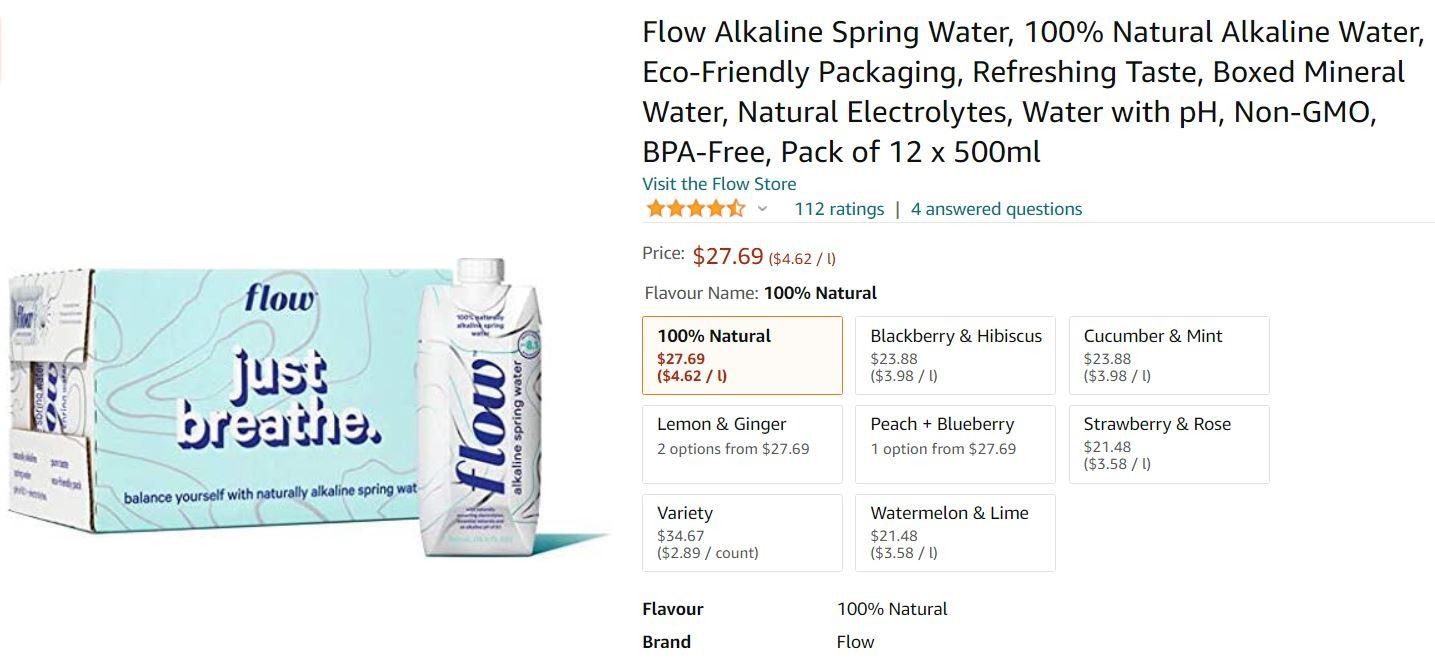 CASE OF FLOW 100% NATURAL SPRING WATER 12 X 500ML