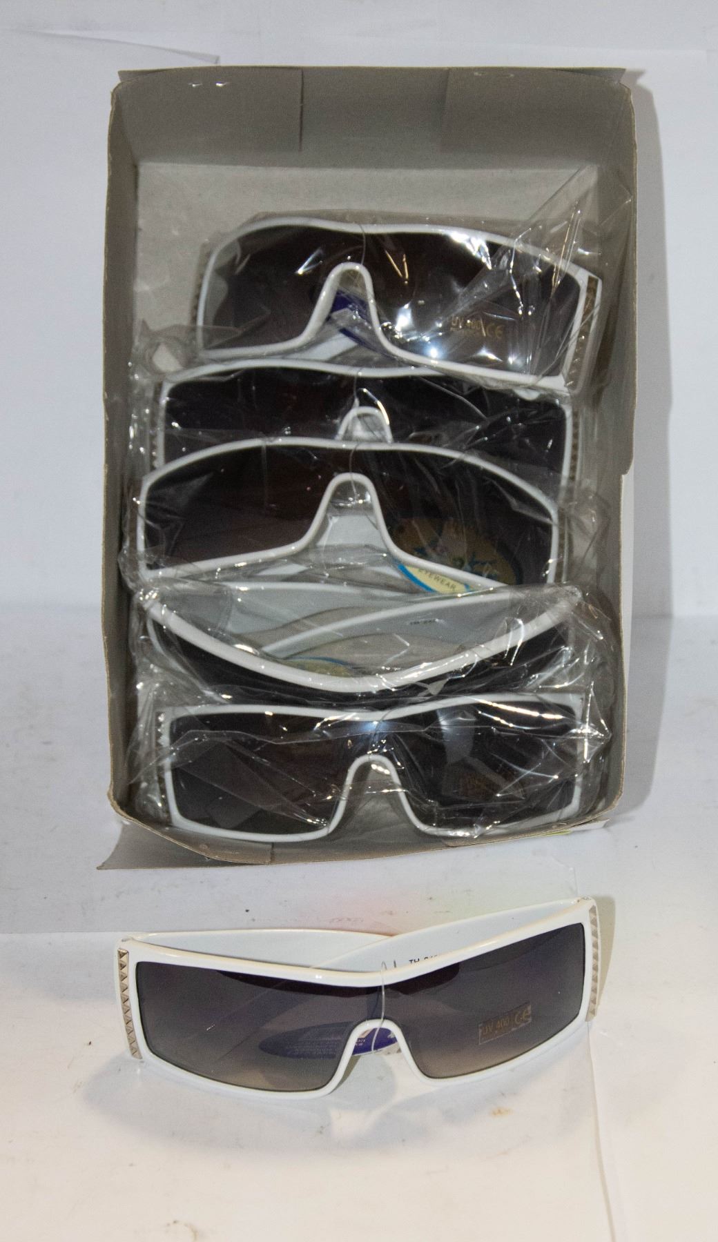 CASE OF WHITE MODERN WIDE LENS SUNGLASSES