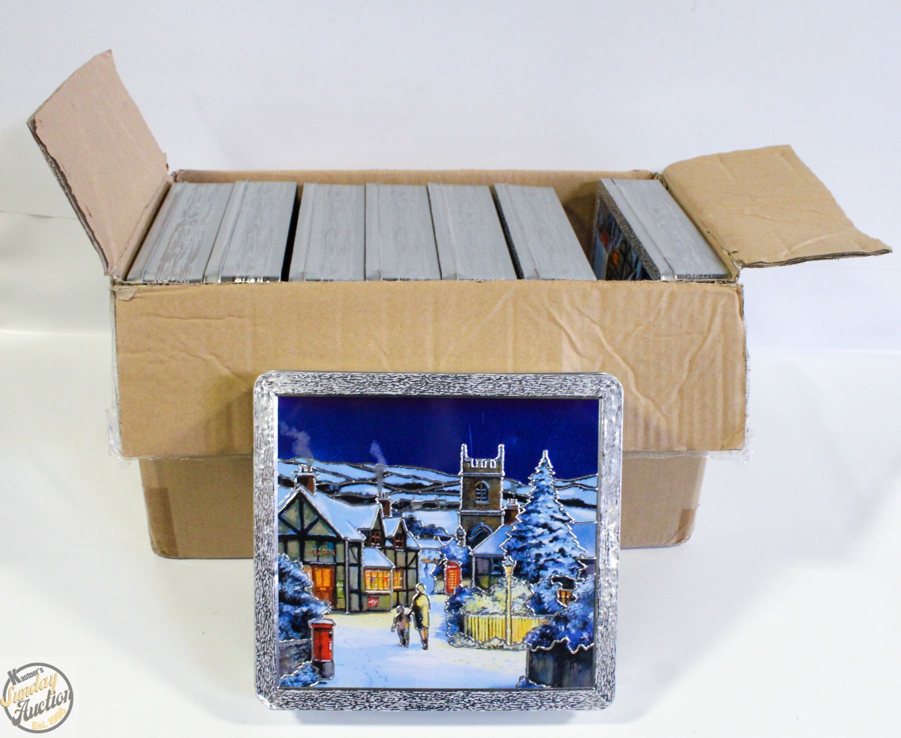 CASE OF WINTER SCENE COOKIE TINS