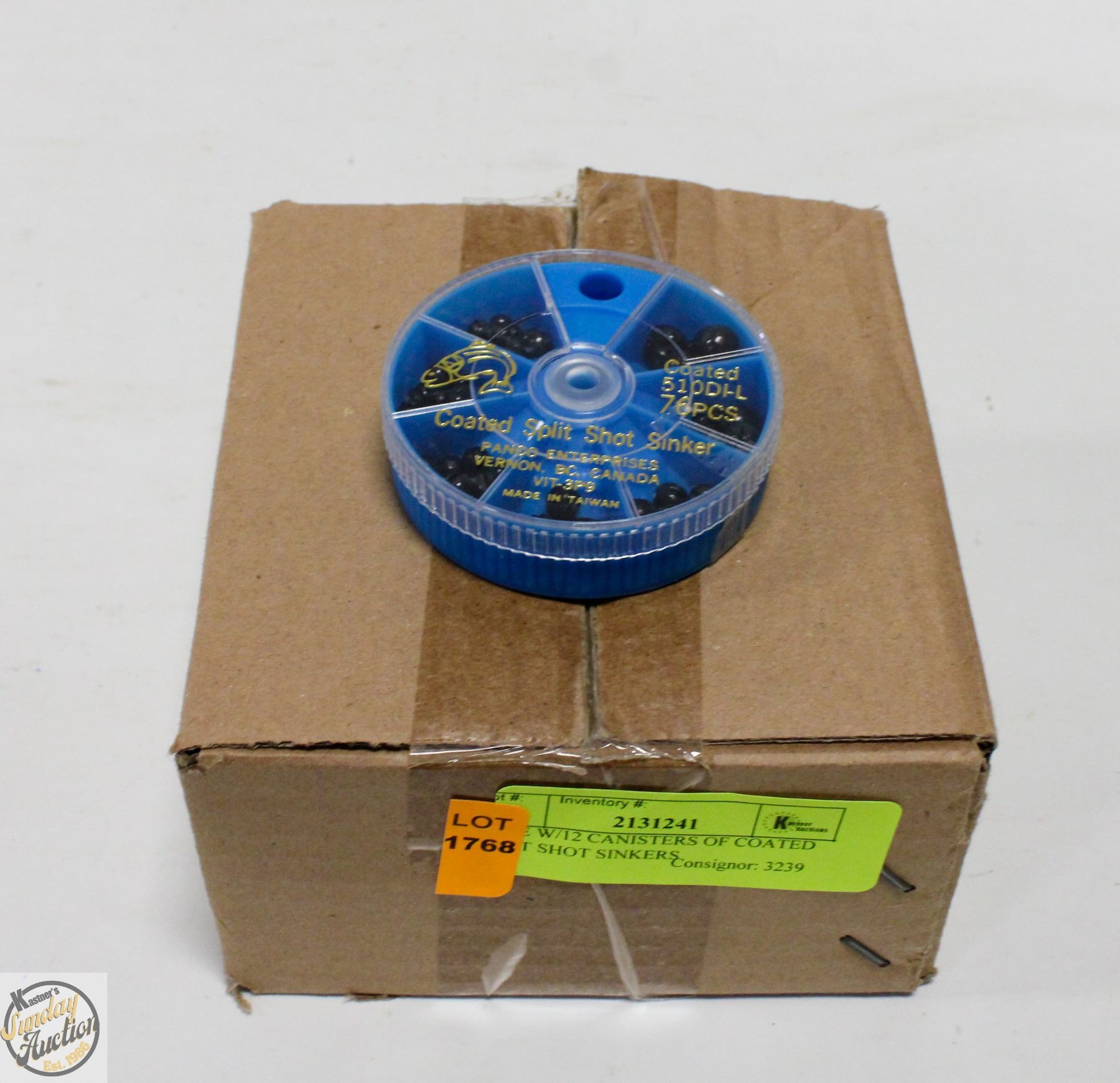 CASE W/12 CANISTERS OF COATED SPLIT SHOT SINKERS