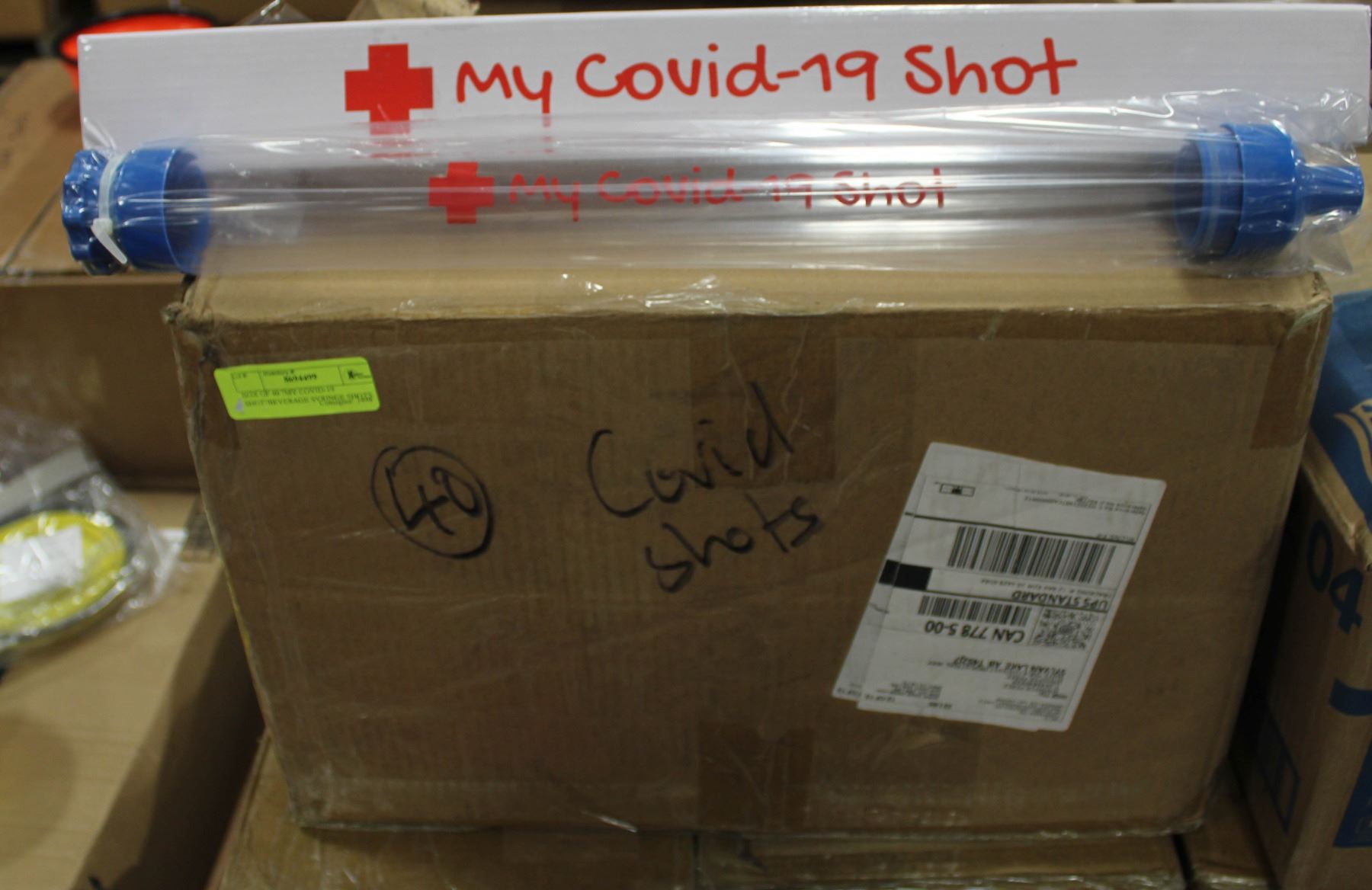 NEW IN BOX, MY COVID-19 SHOT BEVERAGE STICK SYRINGE NOVELTY/ PARTY ITEM, 500MLS, LENGTH: 20 IN, WIDTH: 2 ? IN. **ALL ITEMS MUST BE REMOVED BY 5PM SATURDAY, JULY 29TH 2023. ALL REMAINING ITEMS WILL BE SUBJECT TO A $6.00 PER DAY STORAGE CHARGE. ANY ITEMS REMAINING AFTER MONDAY, AUGUST 14TH, 2023 WILL BE CONSIDERED FORFEITED. NO REFUNDS WILL BE ISSUED FOR FORFEITED ITEMS. TO SCHEDULE A PICK UP APPOINTMENT CLICK HERE
