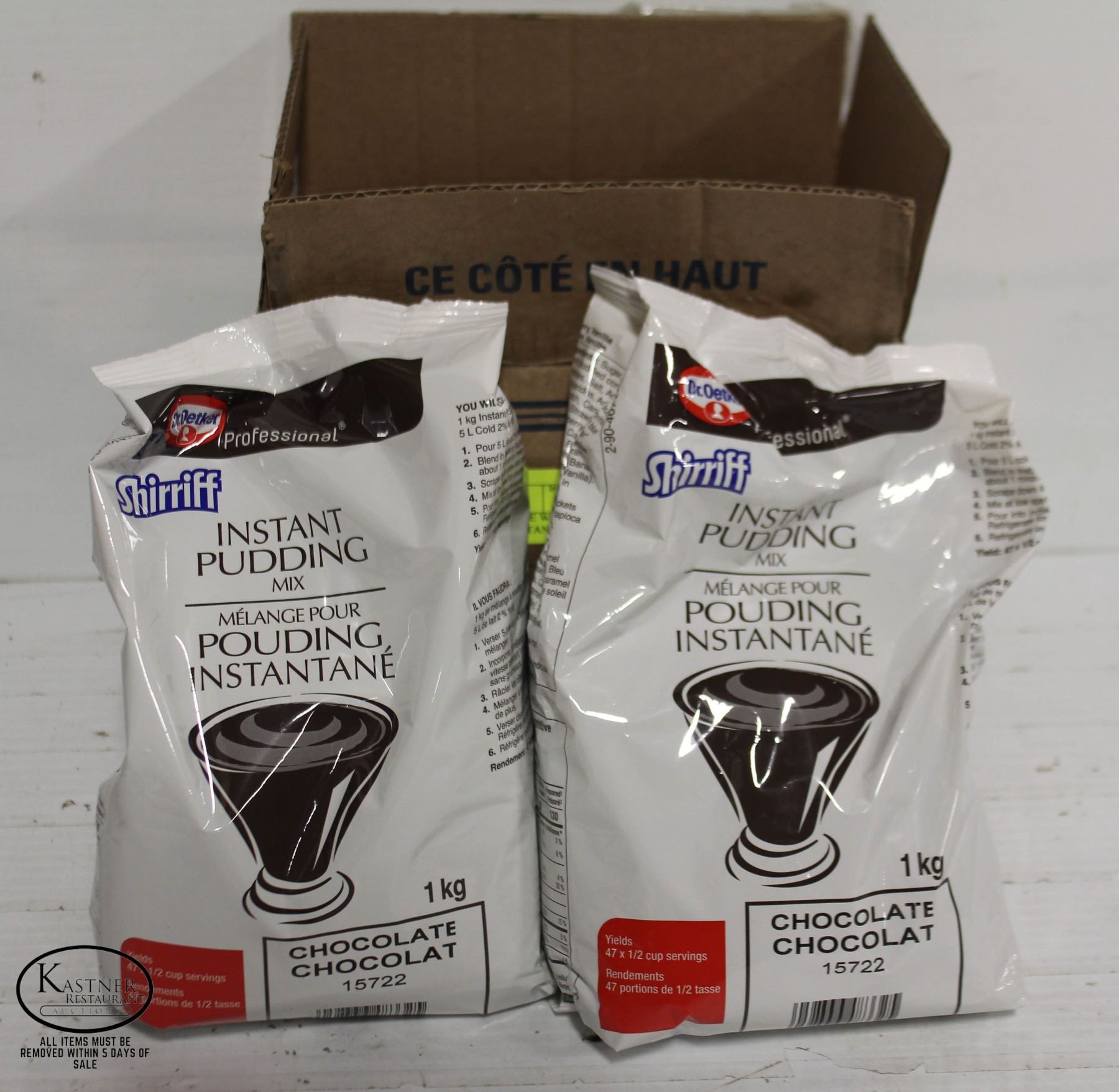 CHOCOLATE PUDDING MIX BY DR. OETKER / SHERRIF **ALL ITEMS MUST BE REMOVED BY 5PM MONDAY, JULY 3RD, 2023. ALL REMAINING ITEMS WILL BE SUBJECT TO A $6.00 PER DAY STORAGE CHARGE. ANY ITEMS REMAINING AFTER MONDAY, JULY 17TH, 2023 WILL BE CONSIDERED FORFEITED. NO REFUNDS WILL BE ISSUED FOR FORFEITED ITEMS.** TO SCHEDULE A PICK UP APPOINTMENT CLICK HERE