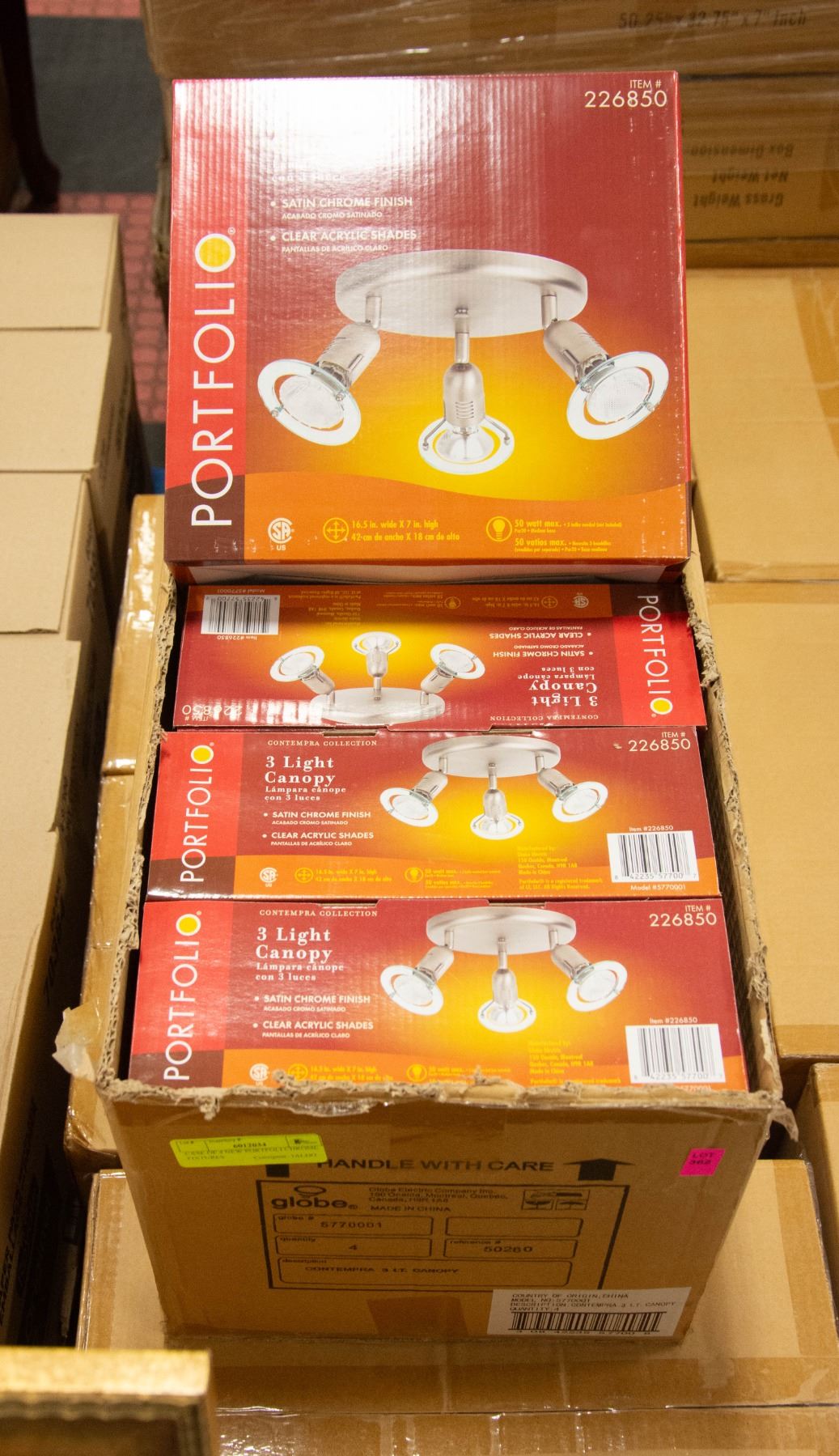 CASE WITH 4 NEW PORTFOLIO 3 LIGHT FIXTURES
