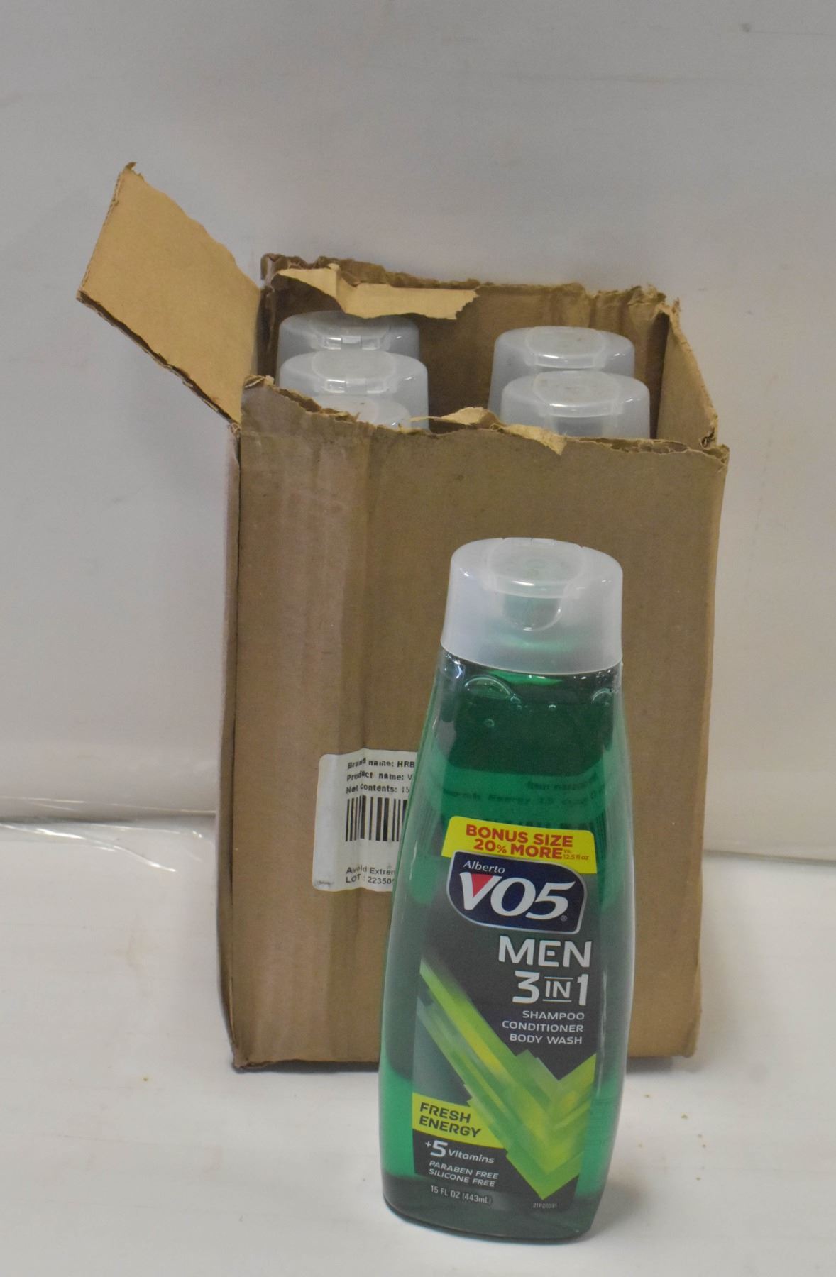 CASE WITH 6 BOTTLES OF VO5 MENS 3 IN 1 SHAMPOO