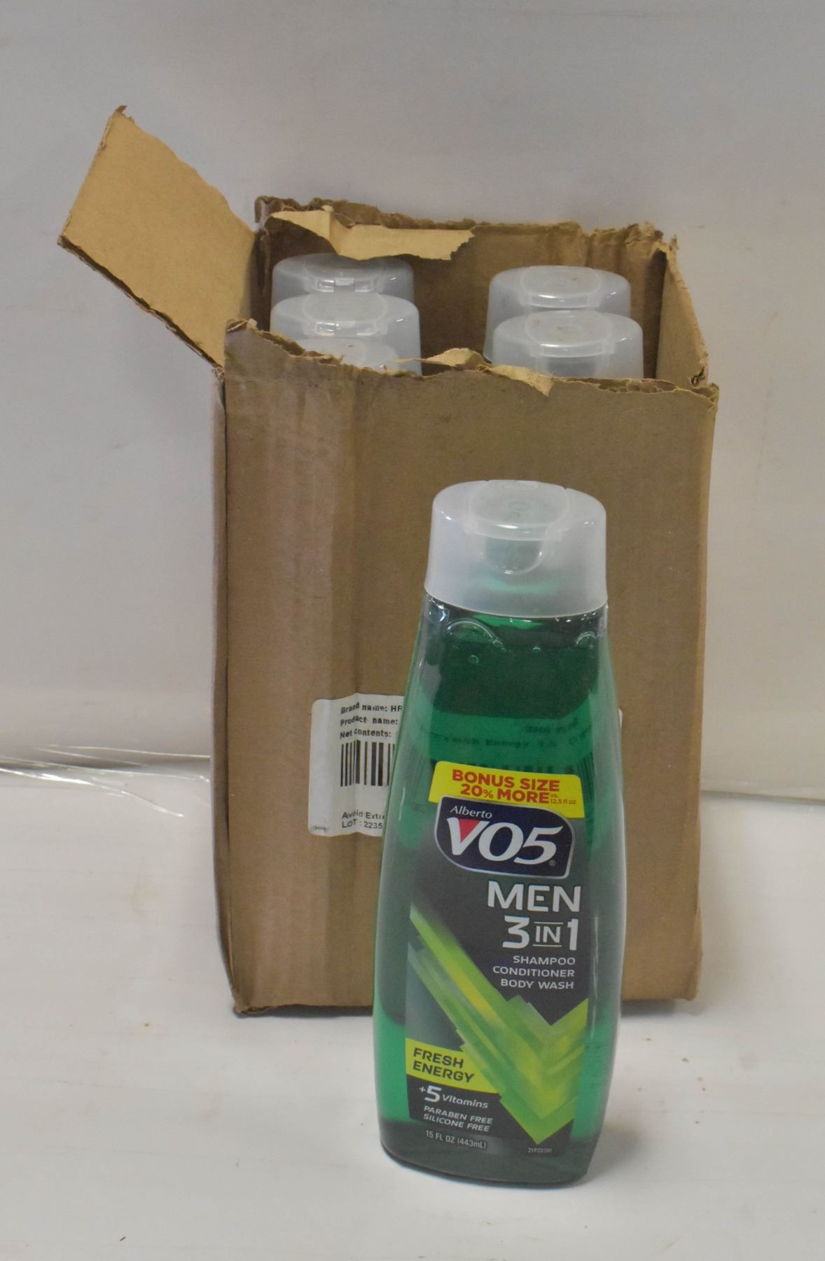 CASE WITH 6 BOTTLES OF VO5 MENS 3 IN 1 SHAMPOO