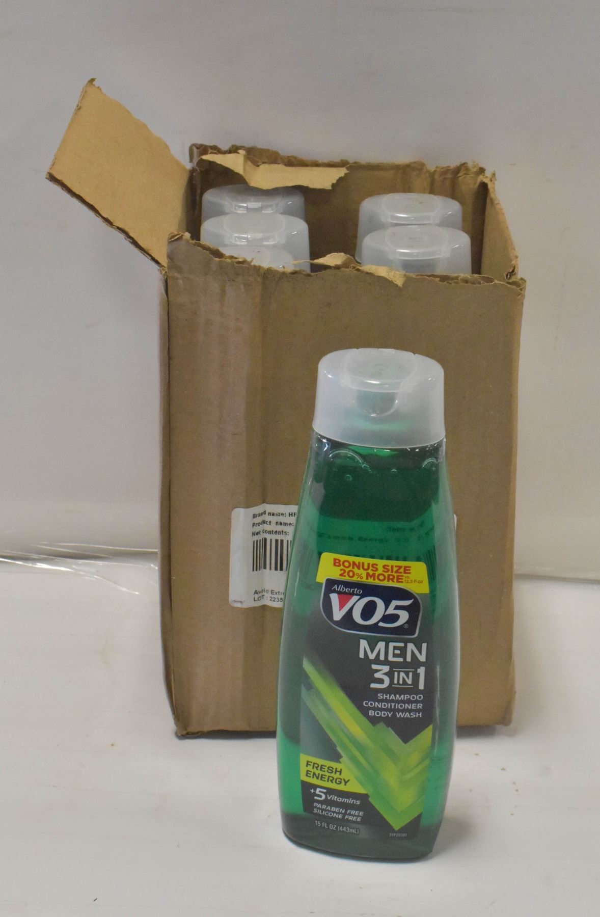 CASE WITH 6 BOTTLES OF VO5 MENS 3 IN 1 SHAMPOO