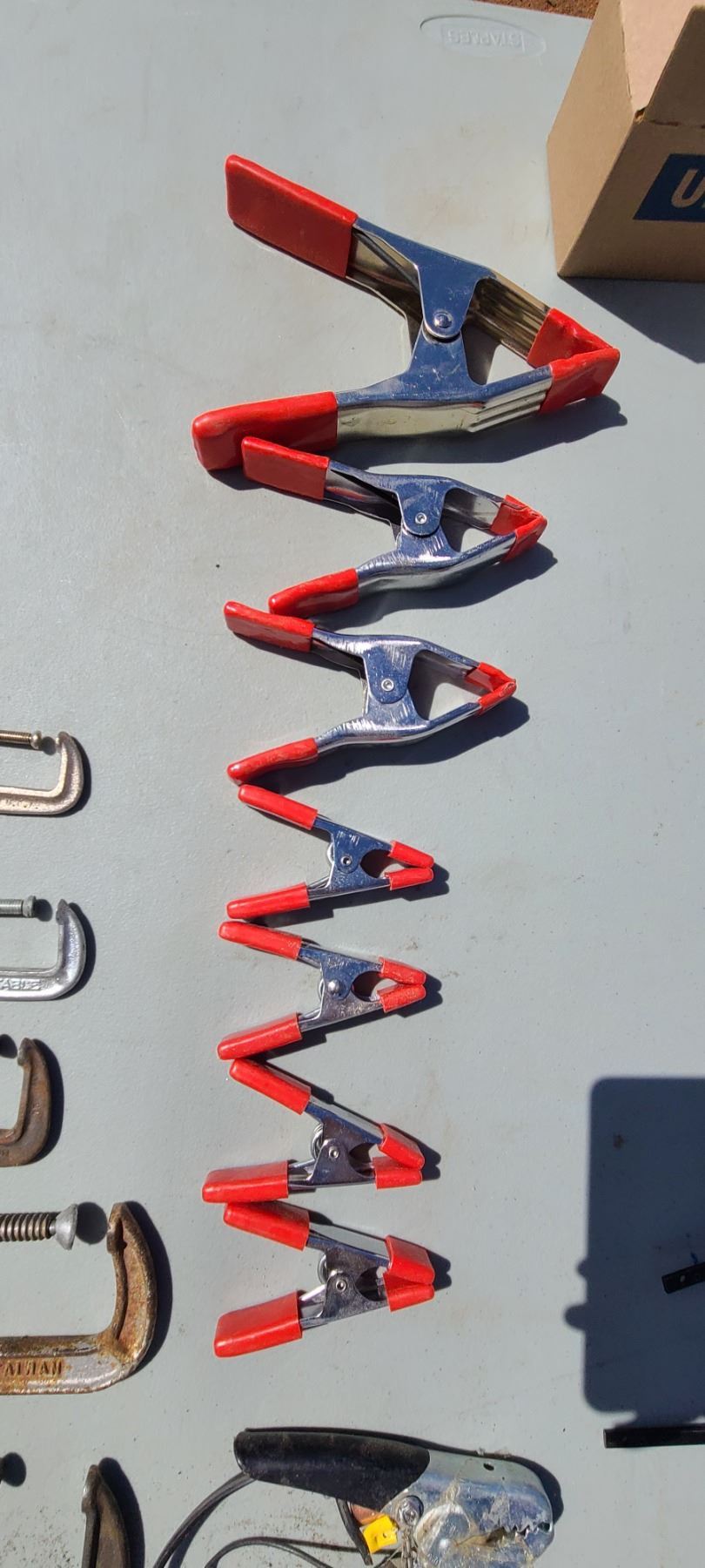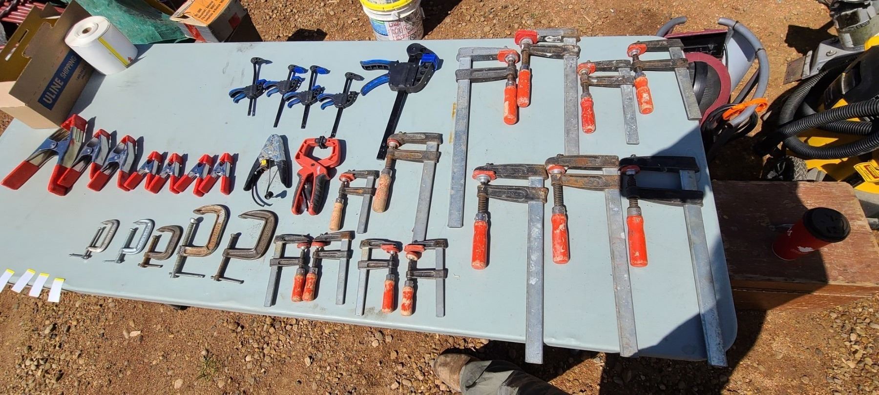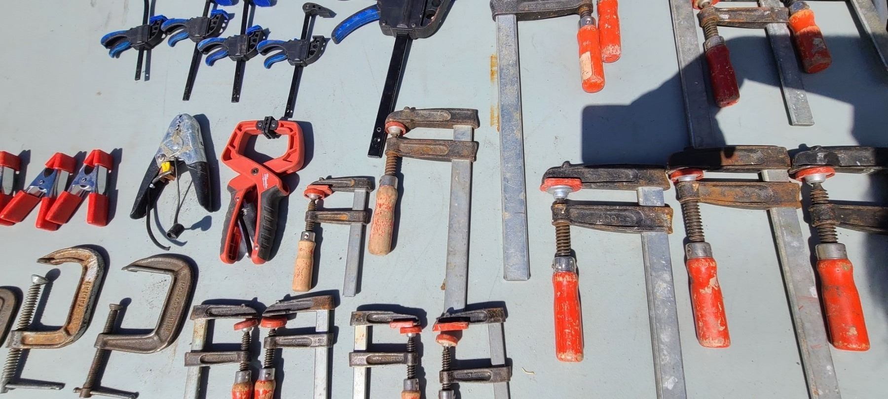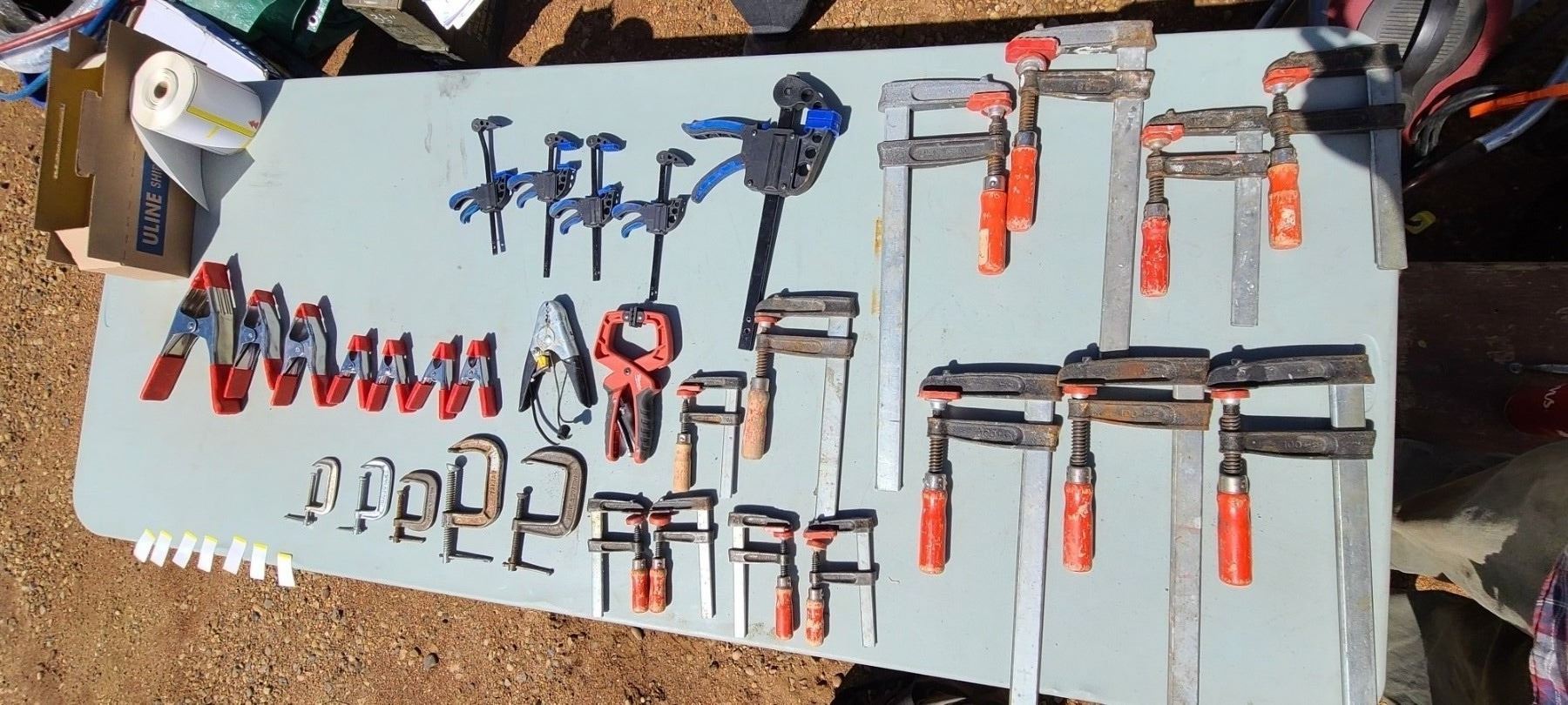 CASE WITH ASSORTED WOOD CLAMPS 30+/-