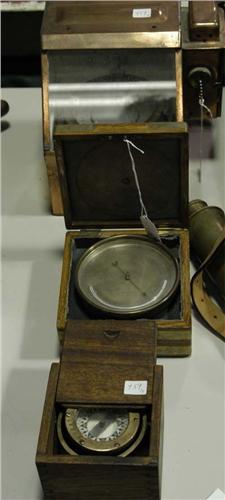 CASED ENGLISH BAROMETER & TWO CASED COMPASSES (this lot must be picked up in person- ABSOLUTELY NO SHIPPING )