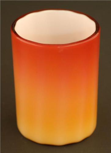CASED TUMBLER lightly ribbed shaded red/peach exterior with white interior, possibly English, 3 5/8" high