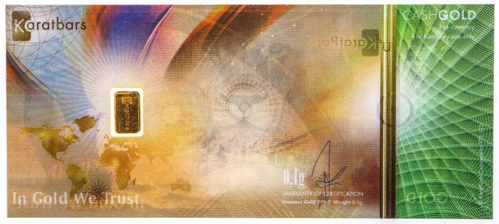 CASH GOLD .999Fine Pure Gold Bar Sealed in Carrier