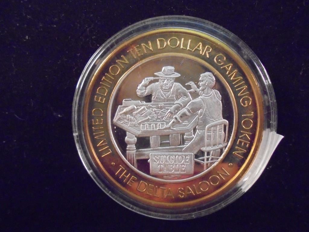 CASINO $10 SILVER TOKEN (UNC) THE DELTA SALOON VIRGINIA CITY, NEVADA, SUICIDE TABLE
