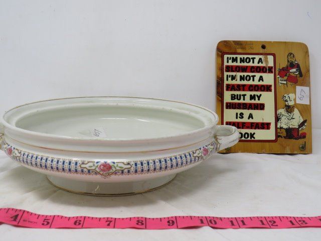 CASSEROLE DISH (LARGE PORCELAIN), WOOD PLAQUE