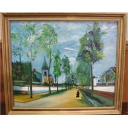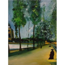 Cassin, modern acrylic on canvas painting of street scene. Signed in lower right & left. 34" x 29.5" framed.