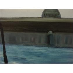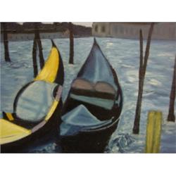 Cassin, acrylic on board painting of dock scene. Signed on reverse. 41" x 31.75" framed.
