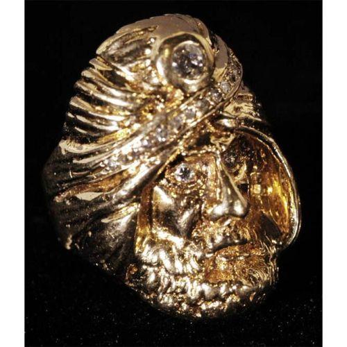 CAST 14K GOLD RING, in the form of a Turk with diamond eyes,