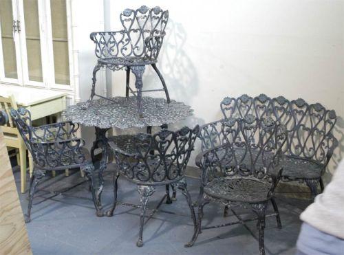 CAST ALUMINUM GARDEN SET, table, 4 chairs and bench, SHIPPING: See recommended third party shippers. This item can't be packed or shipped by seller.,