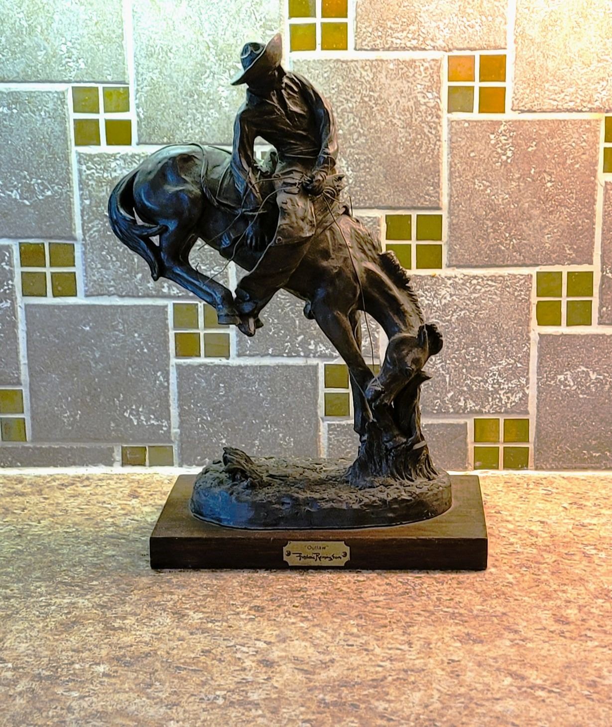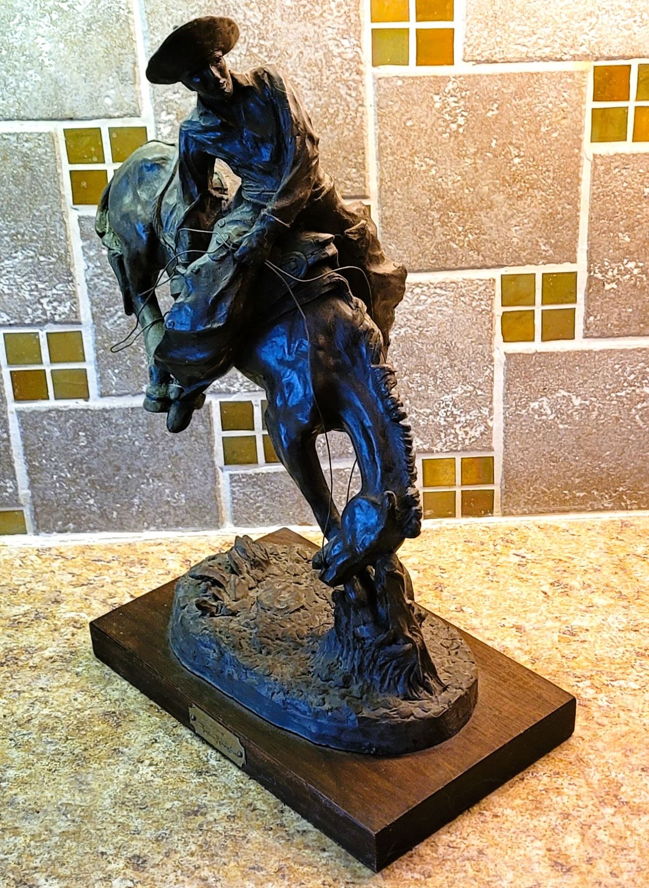 FREDERIC REMINGTON COWBOY ON HORSE SCULPTURE REPRODUCTION. HOME DĀECOR **ALL ITEMS MUST BE REMOVED BY 5PM SATURDAY, JANUARY 7TH 2022. ALL REMAINING ITEMS WILL BE SUBJECT TO A $6.00 PER DAY STORAGE CHARGE. ANY ITEMS REMAINING AFTER MONDAY, JANUARY 22ND, 2022 WILL BE CONSIDERED FORFEITED. NO REFUNDS WILL BE ISSUED FOR FORFEITED ITEMS. TO SCHEDULE A PICK UP APPOINTMENT CLICK HERE