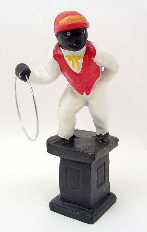 CAST IRON BLACK AMERICANA JOCKEY BOY DOORSTOP