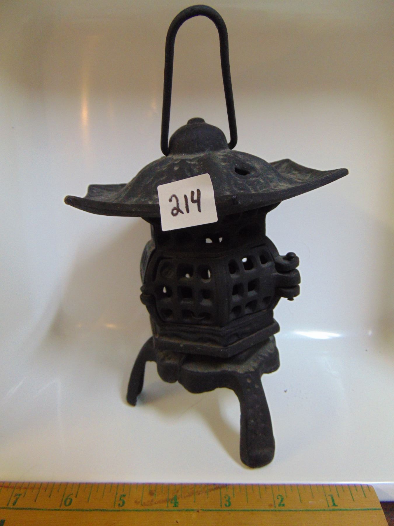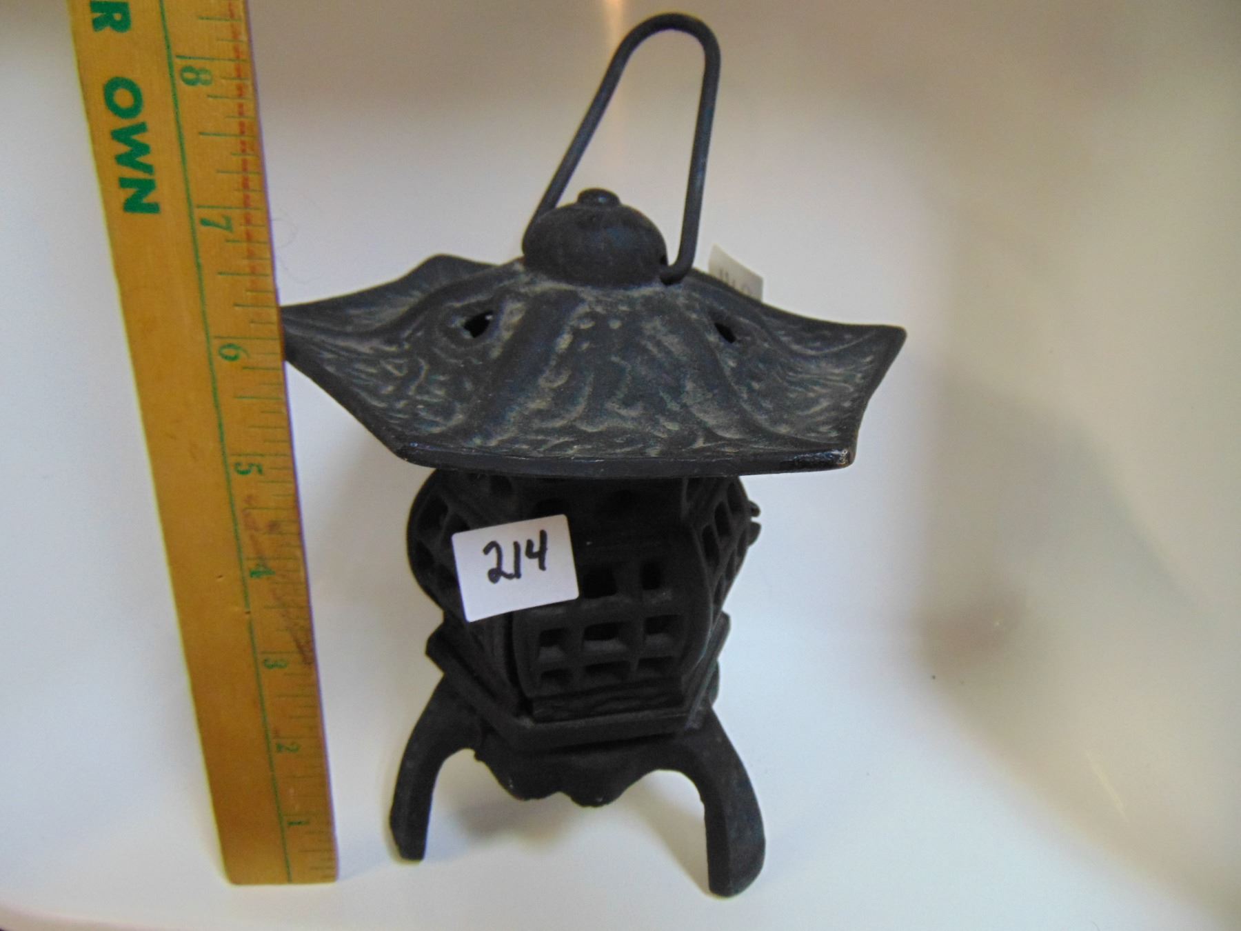 CAST IRON BLACK PAGODA CANDLE LANTERN 6½" TALL 5" WIDE