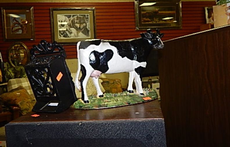 CAST IRON COW AND FIRE PLACE WOOD MATCH HOLDER