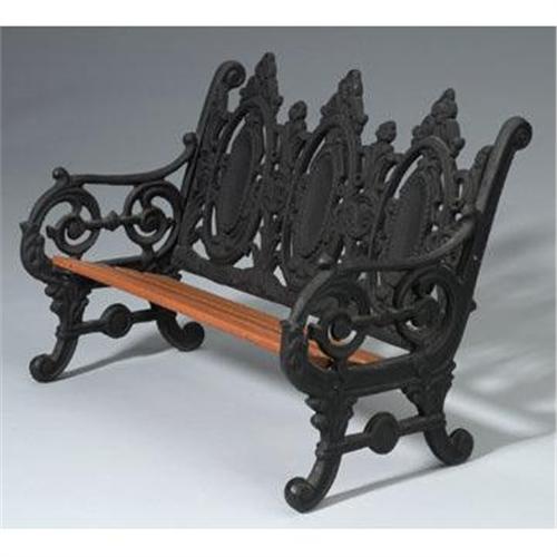 Brand new cast iron dollhouse bench, with medium brown finish, wood slat seat, Dimensions: 10"h, 15"w, 10"d