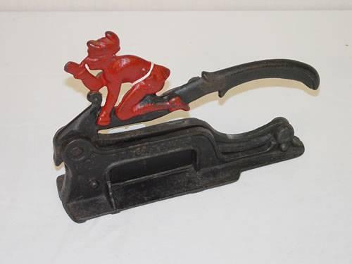 CAST IRON FIGURAL TOBACCO CUTTER W/ JESTER FIGURE MARKED BRIGHTON #3 - PAINT WEAR;