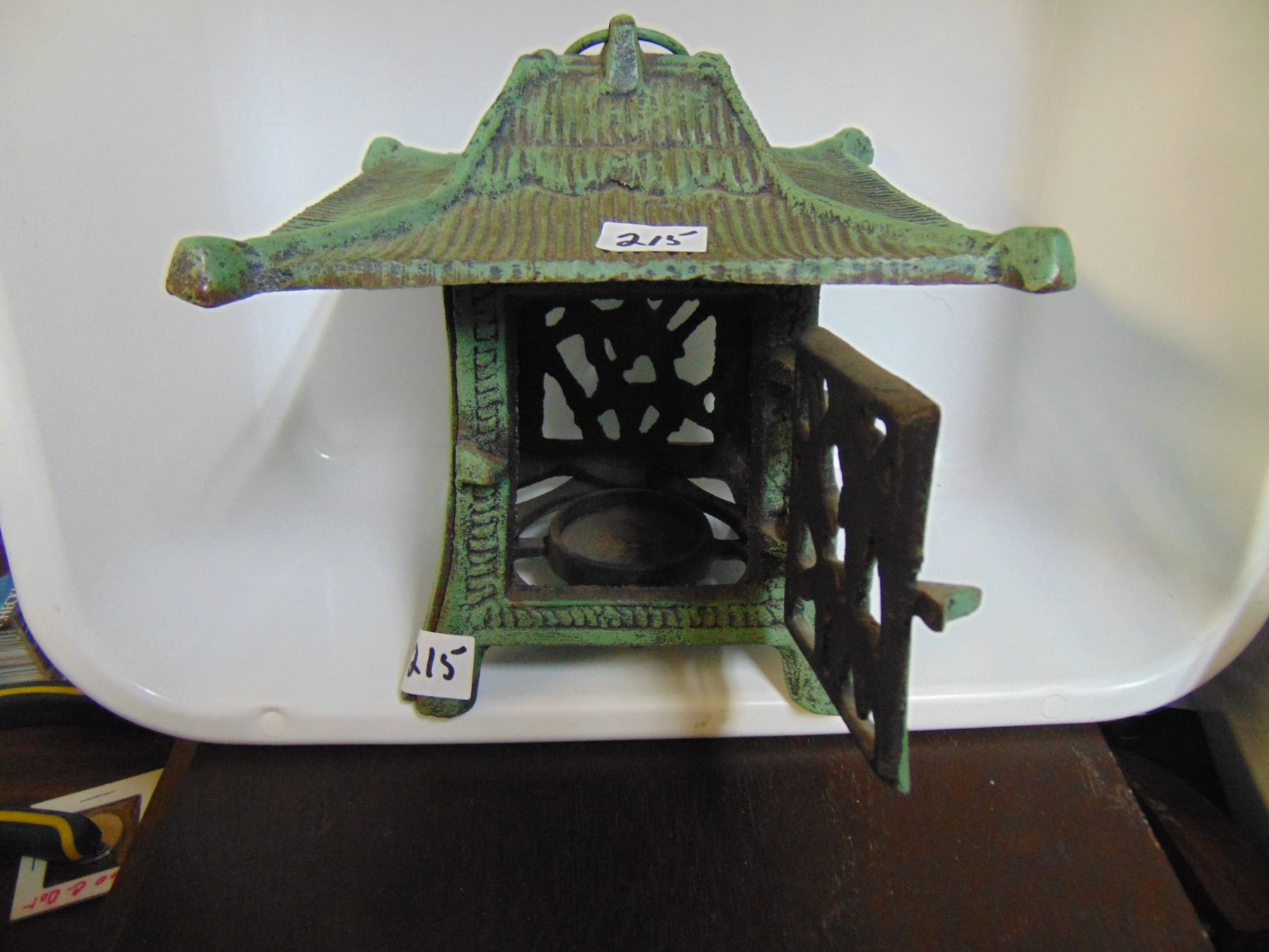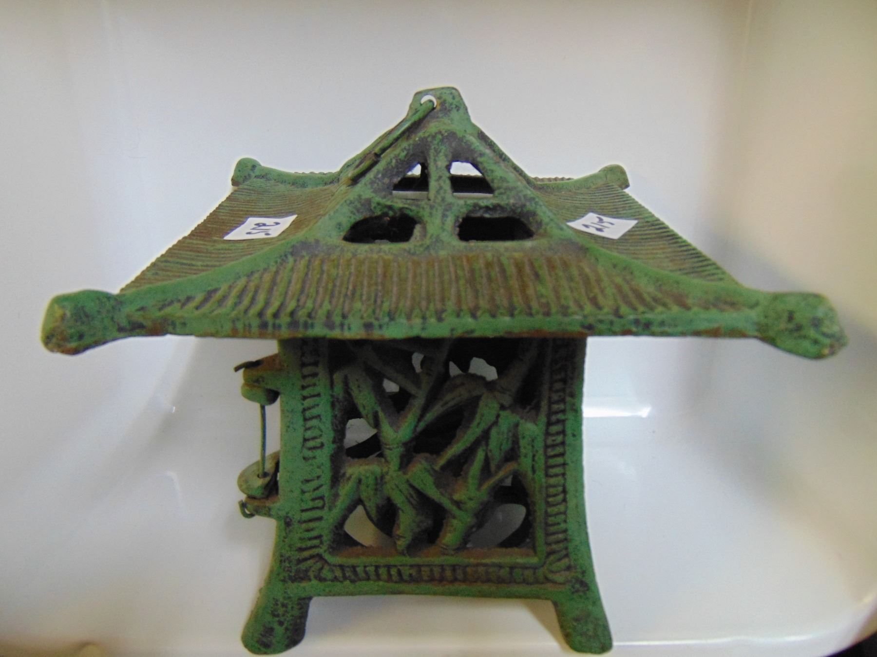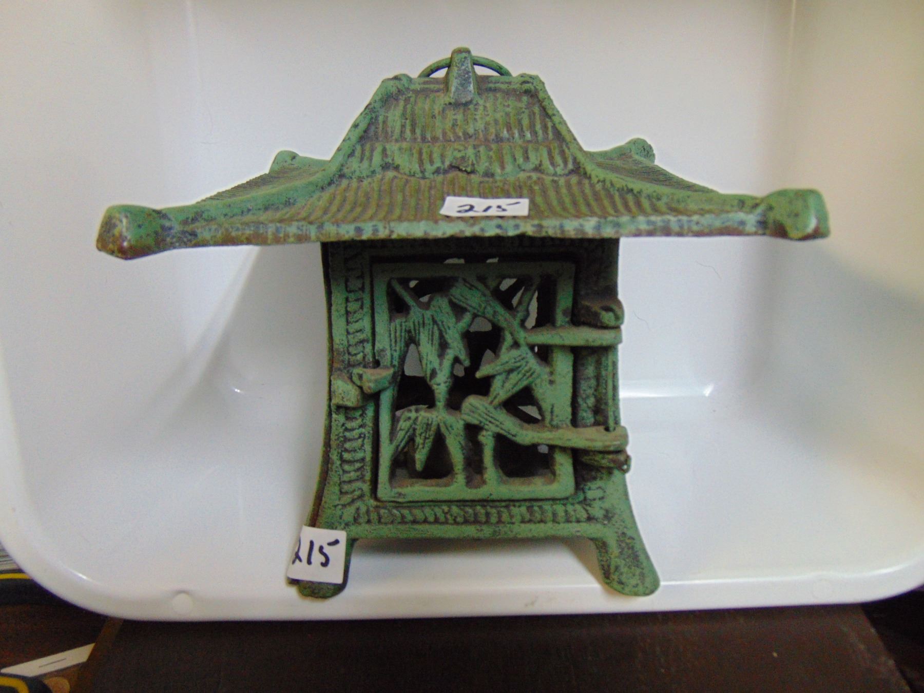 CAST IRON GREEN PAGODA CANDLE LANTERN 7" TALL 7½" WIDE