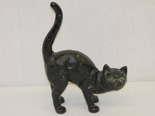 CAST IRON HALLOWEEN CAT DOORSTOP IN BLACK PAINT;
